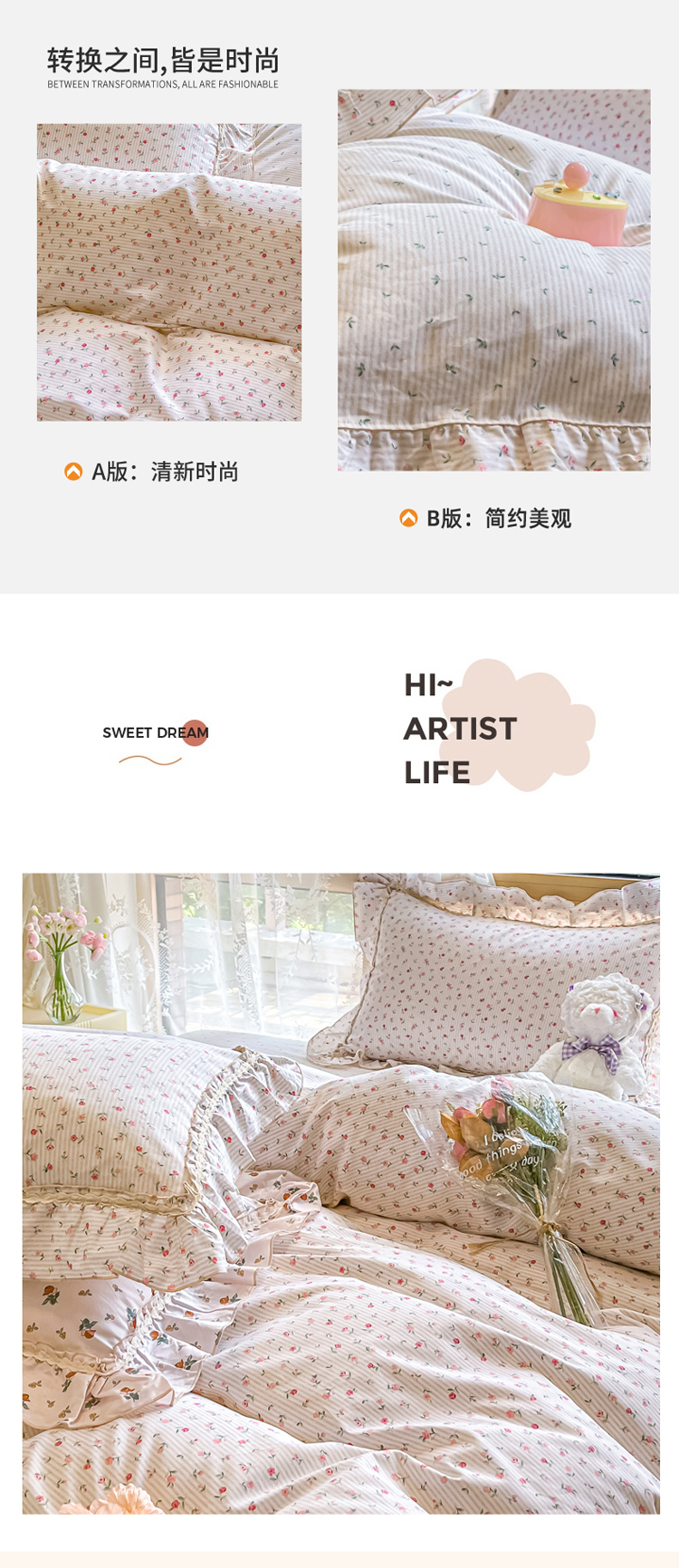 商品名称:艾唯希家纺 2024新款全棉韩式花边四件套纯棉公主风田园系列 春田