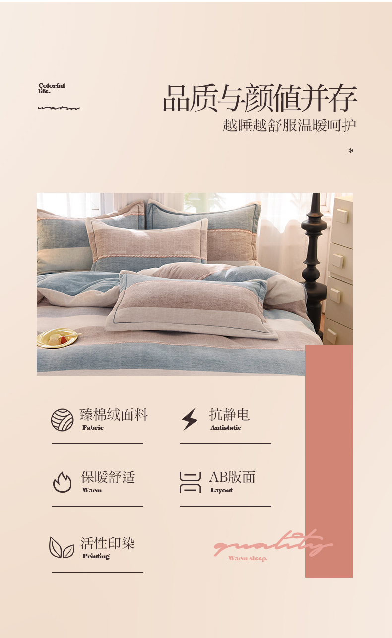 商品名称:简如 2025新款冰岛臻绵绒印花四件套 简条蓝