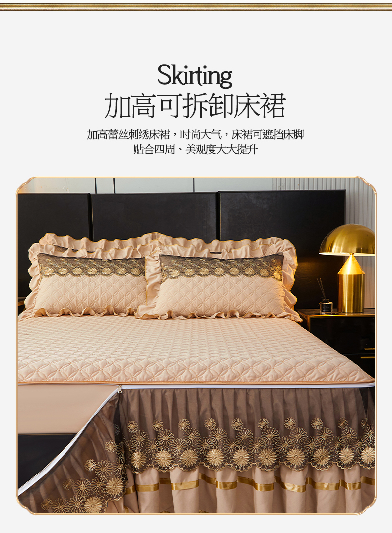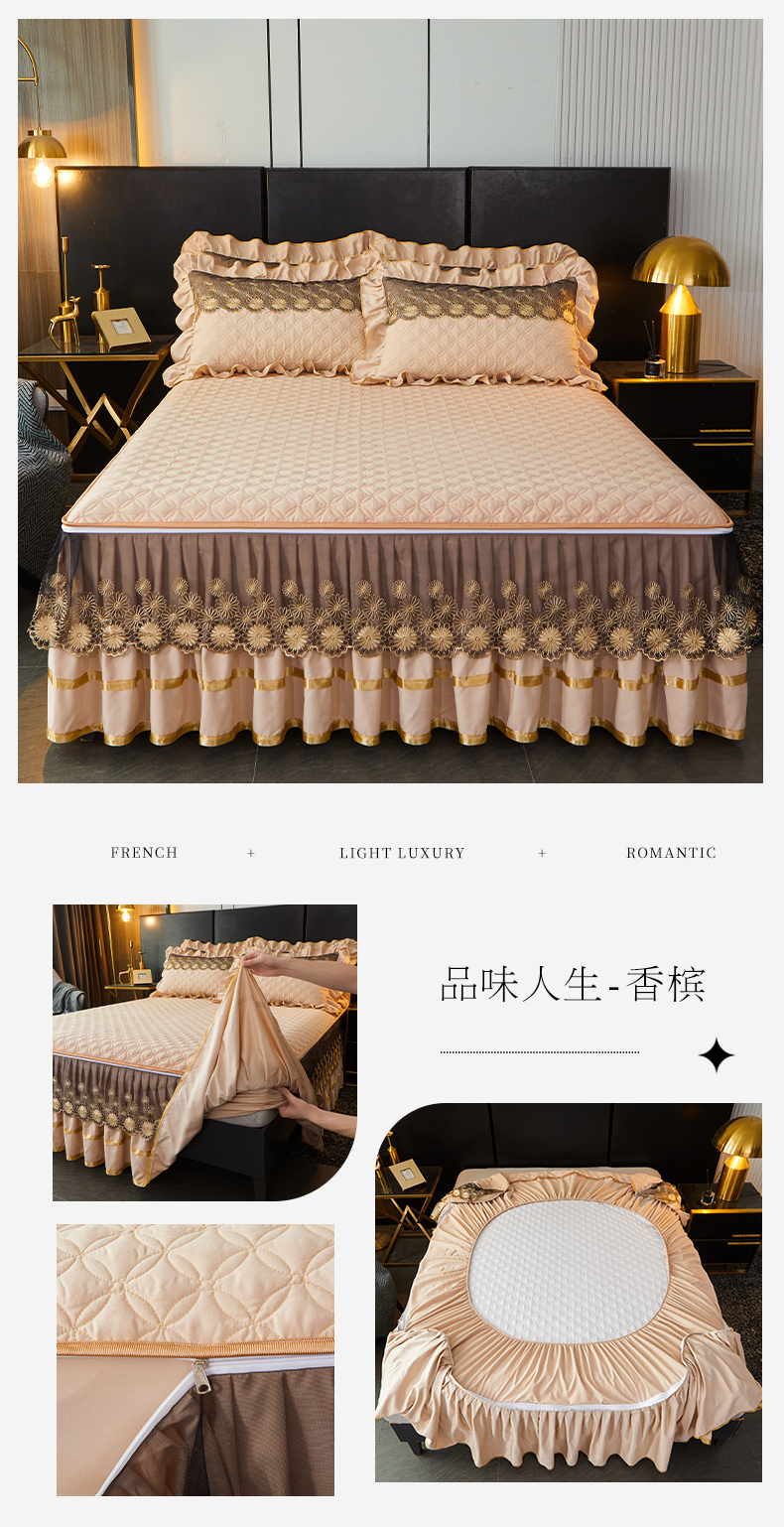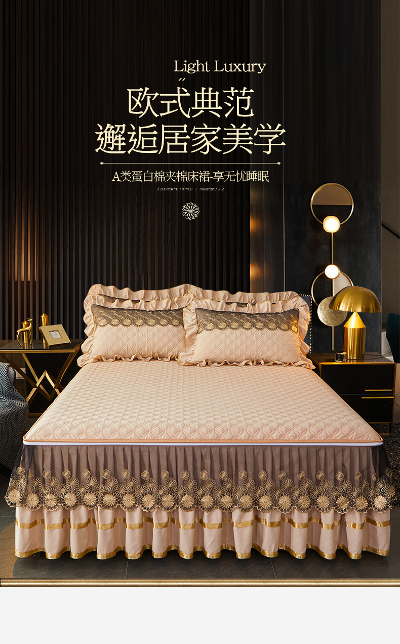 商品名称:罗艺轩 2024新款A类蛋白棉夹棉床裙-品味人生 品味人生-香槟