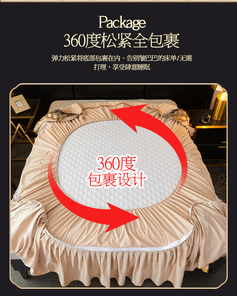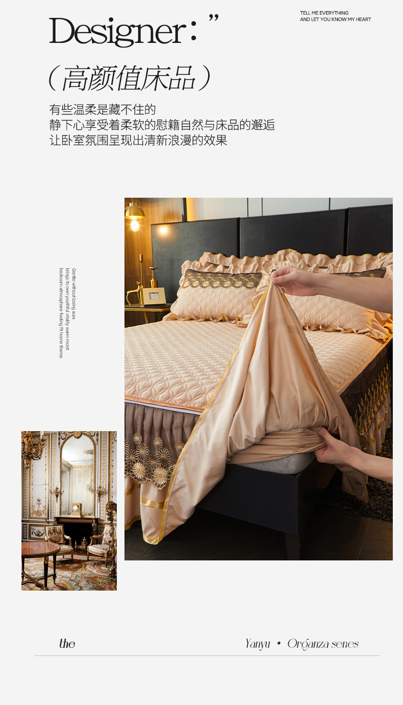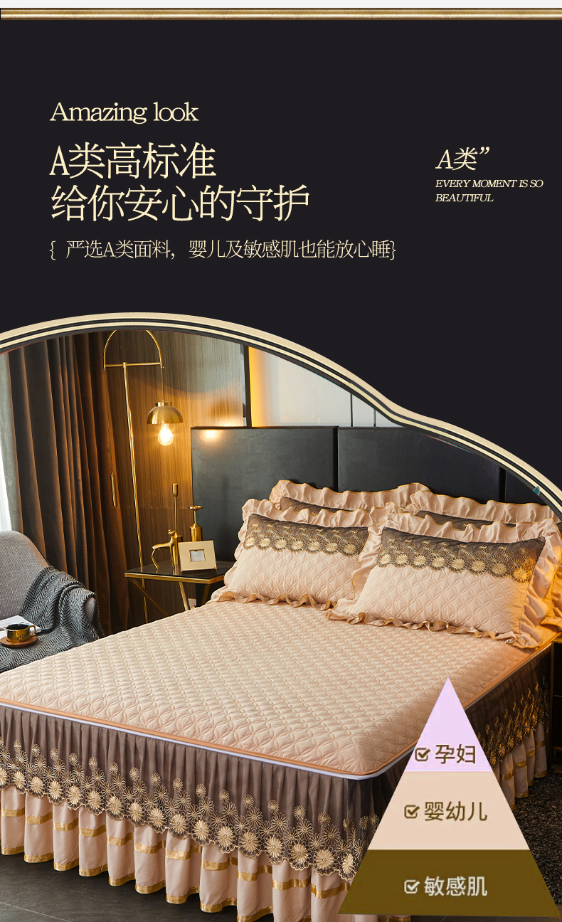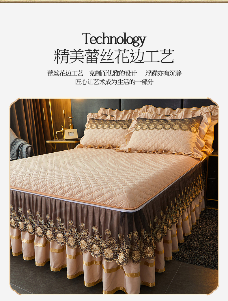商品名称:罗艺轩 2024新款A类蛋白棉夹棉床裙-品味人生 品味人生-香槟