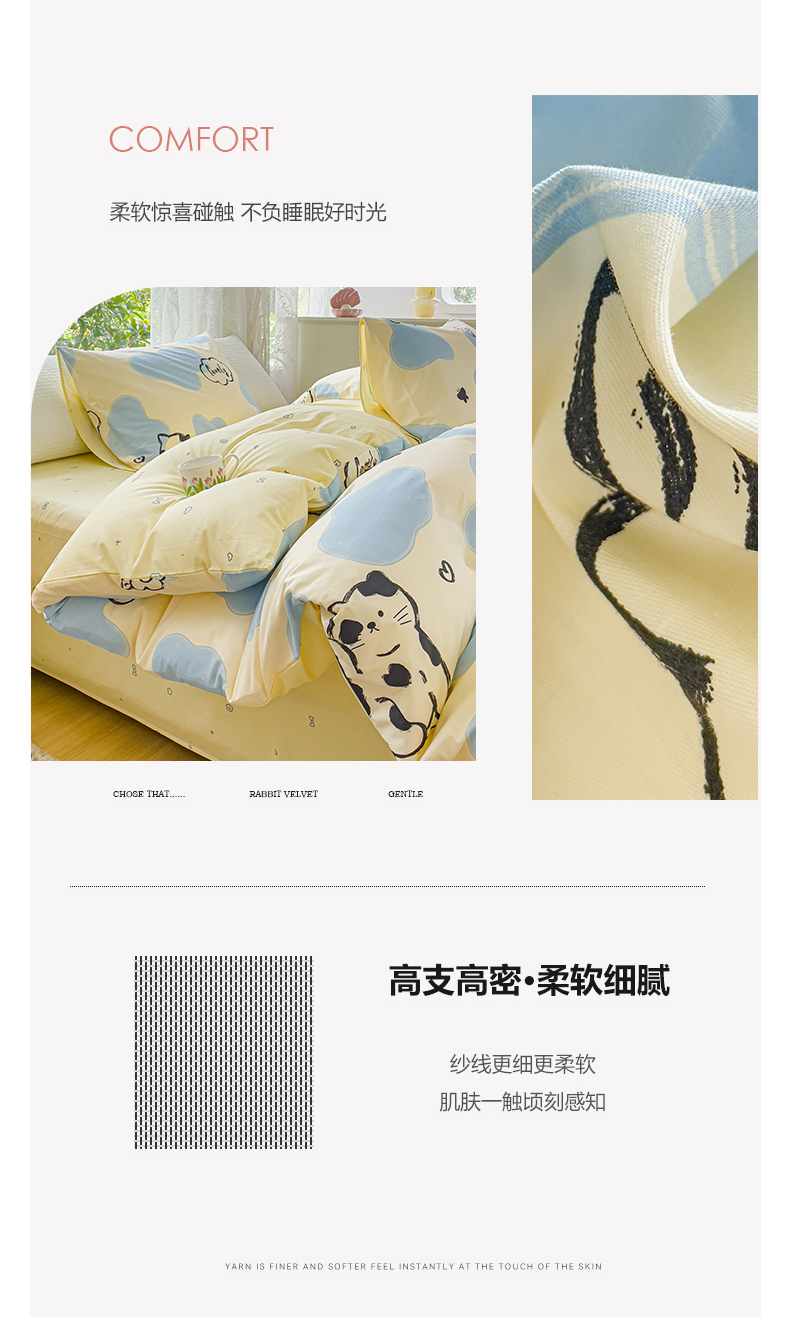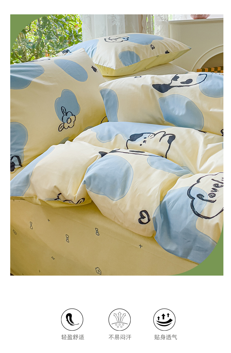 (总)感遇家纺 2025新款小清新甜系全棉四件套,百丽兔,波点小女孩,点点小狗,复古樱桃,格子草莓,格子樱桃,花间牧歌,灰条猫咪,奶绿,宁夏,森林小熊猫,甜心波点