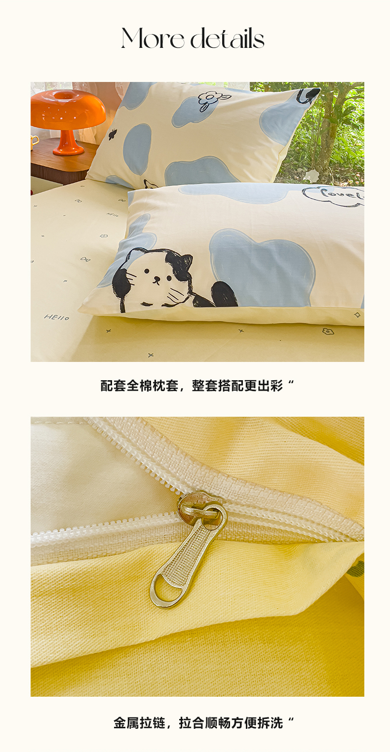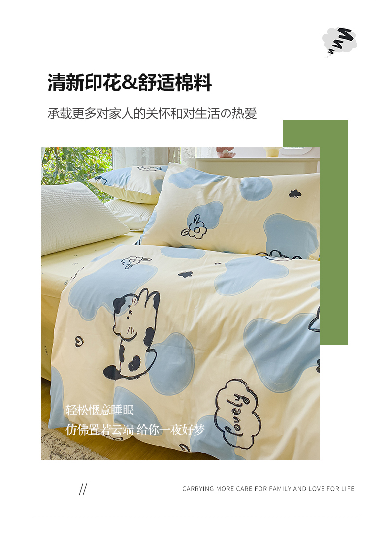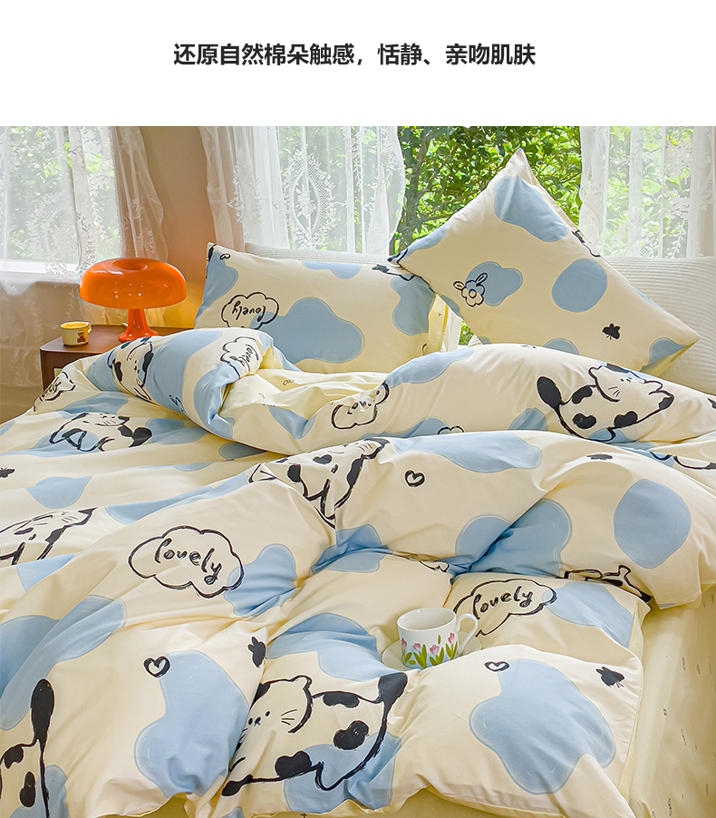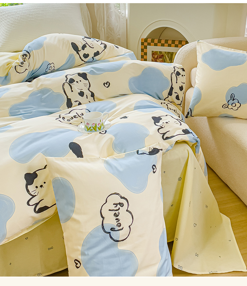 商品名称:感遇家纺 2023新款全棉印花四件套 牛奶猫