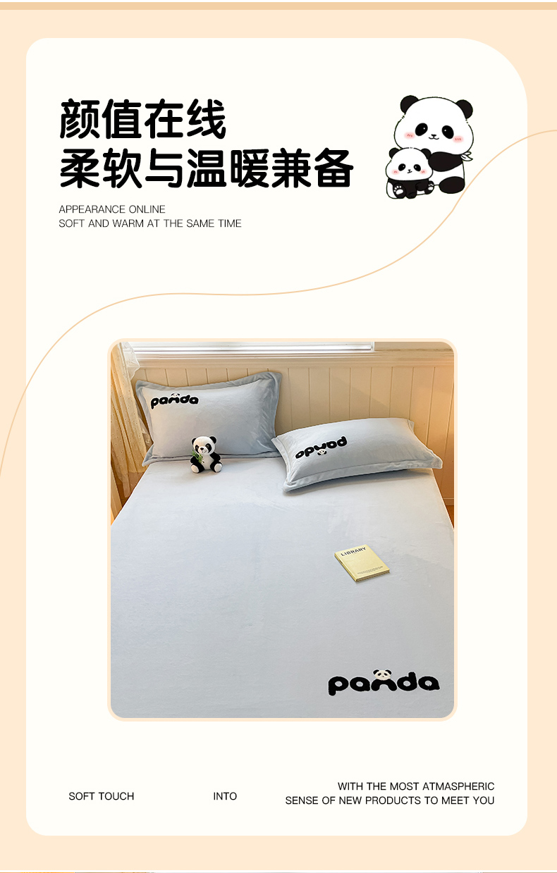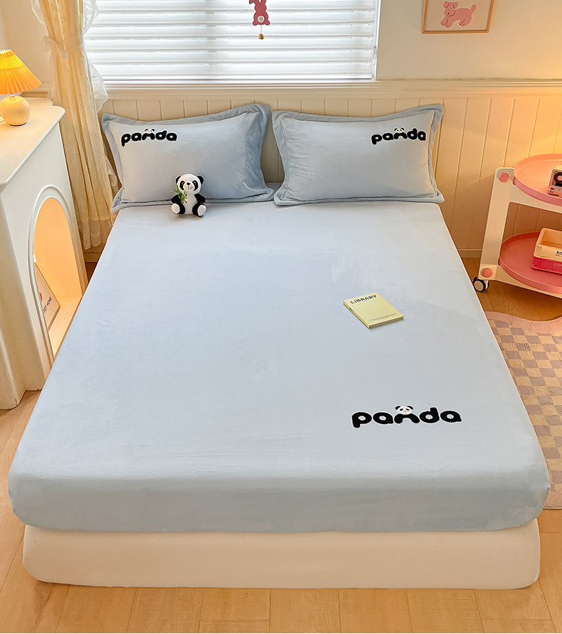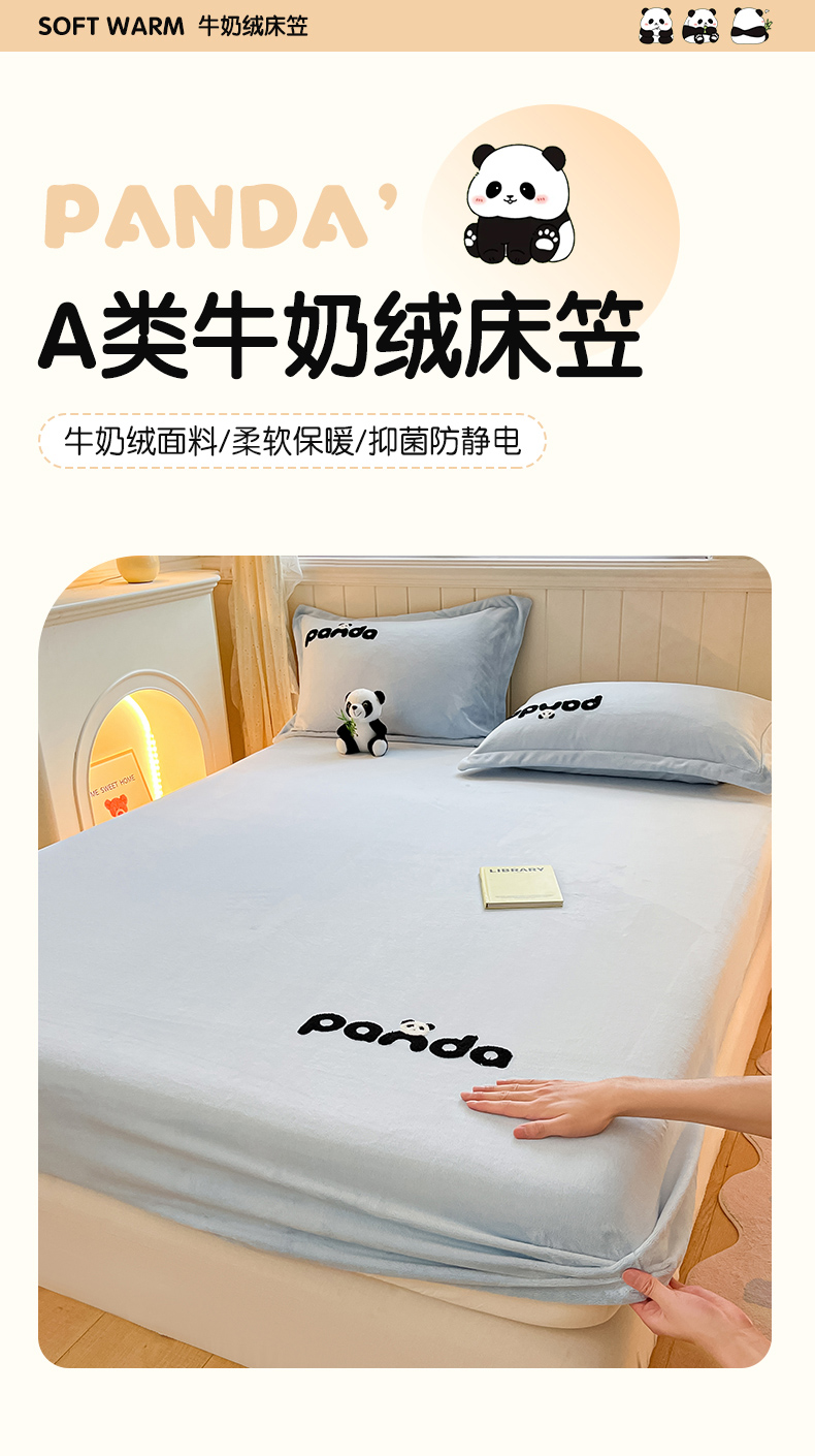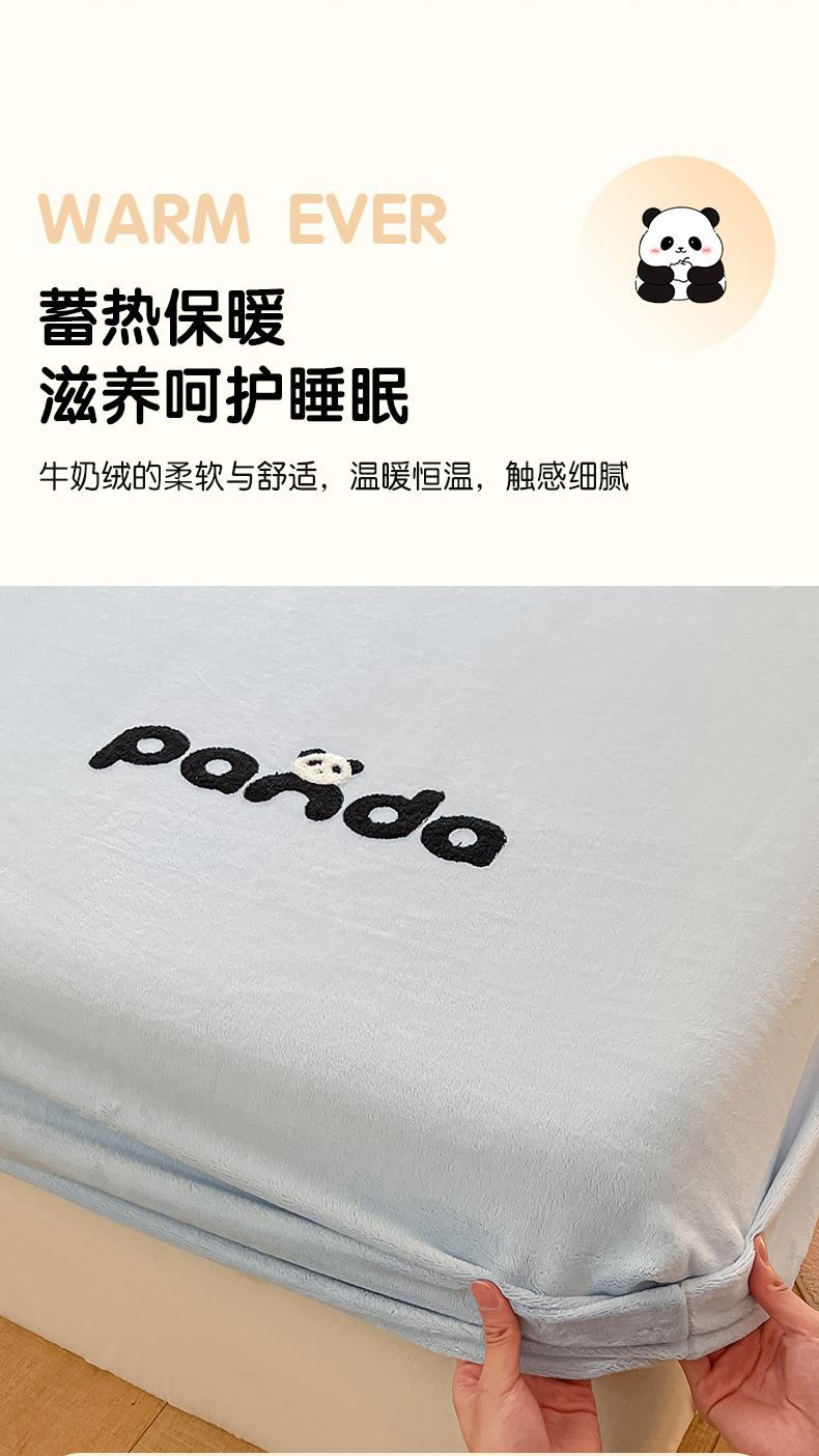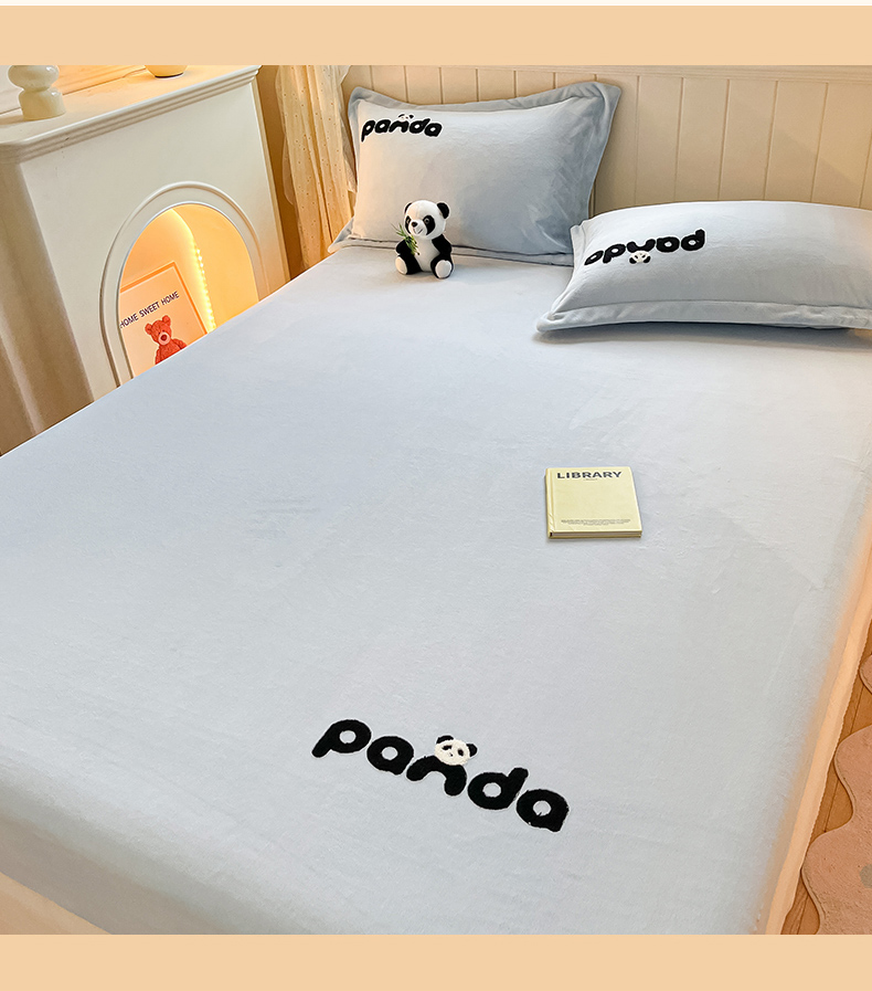 丽美人家纺 2023新款熊猫牛奶绒毛巾绣床笠 熊猫-布鲁蓝
