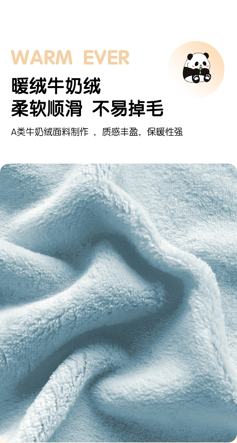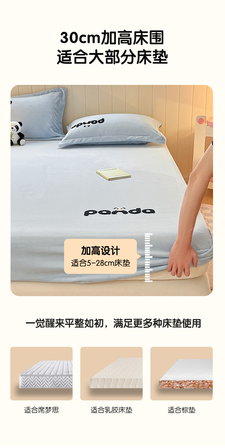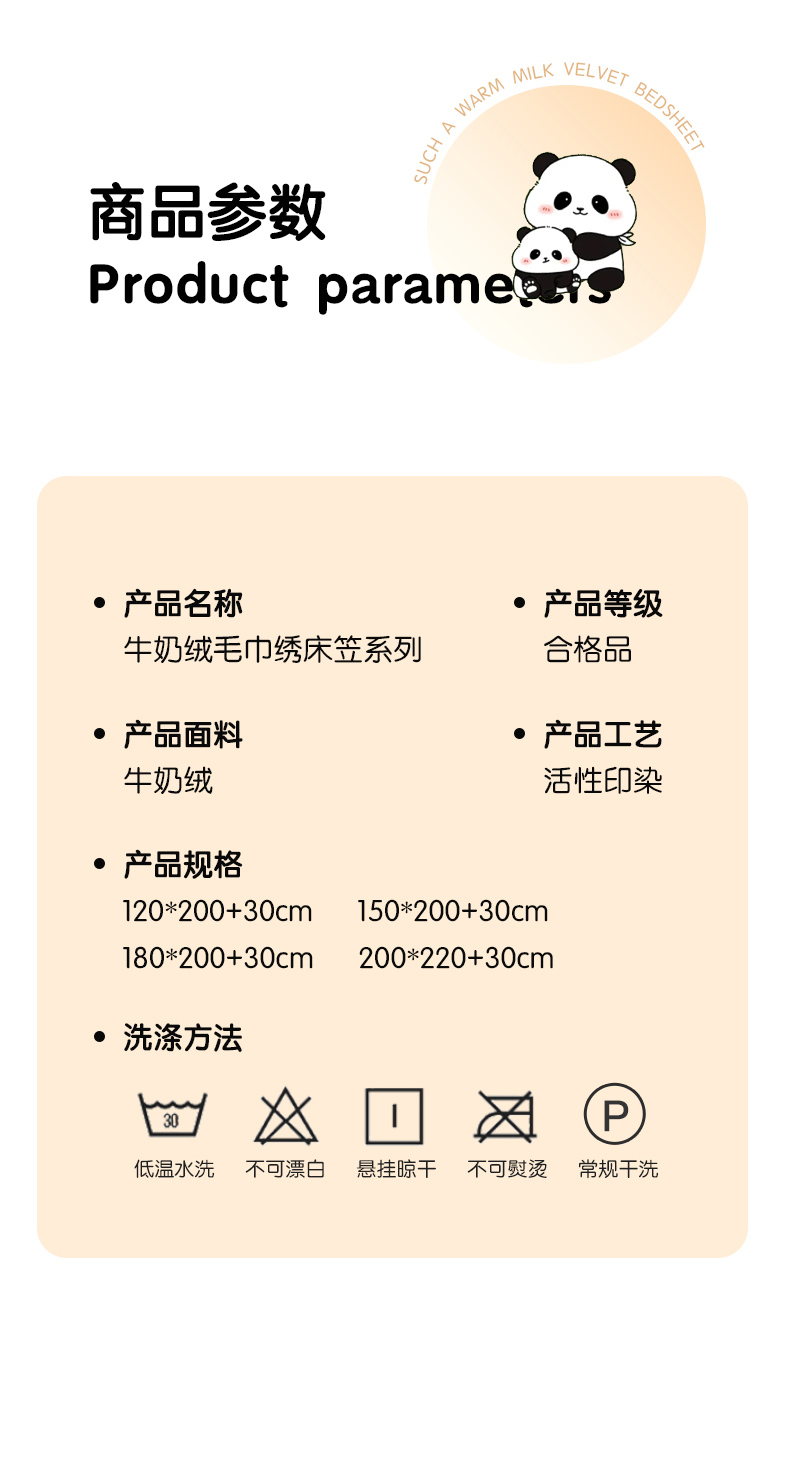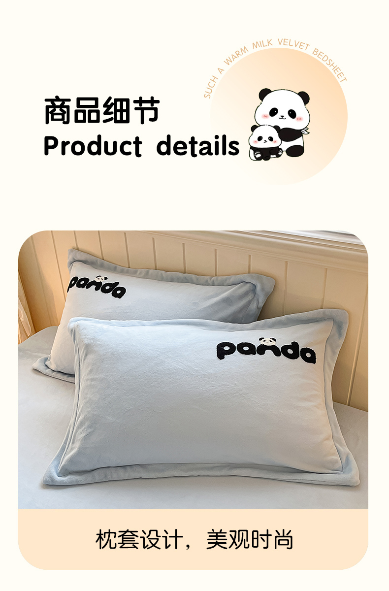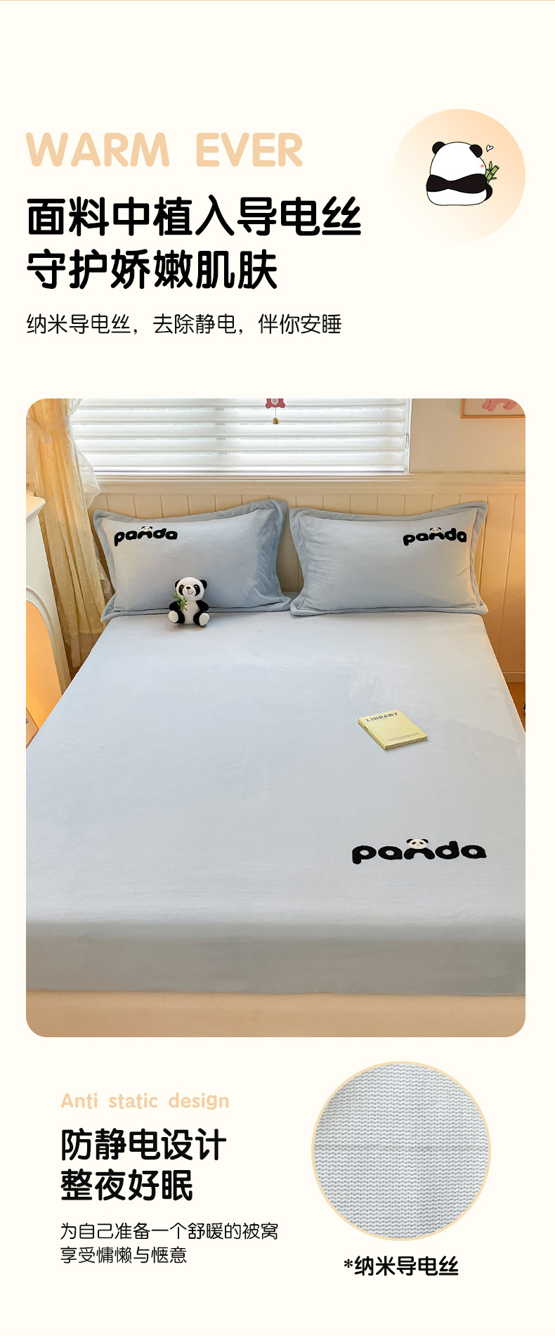 丽美人家纺 2023新款熊猫牛奶绒毛巾绣床笠 熊猫-布鲁蓝