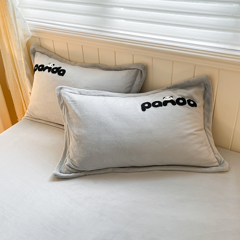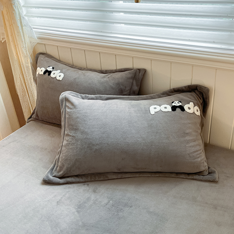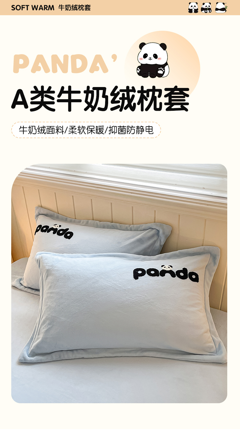 (总)丽美人家纺 2023新款熊猫牛奶绒毛巾绣单枕套
