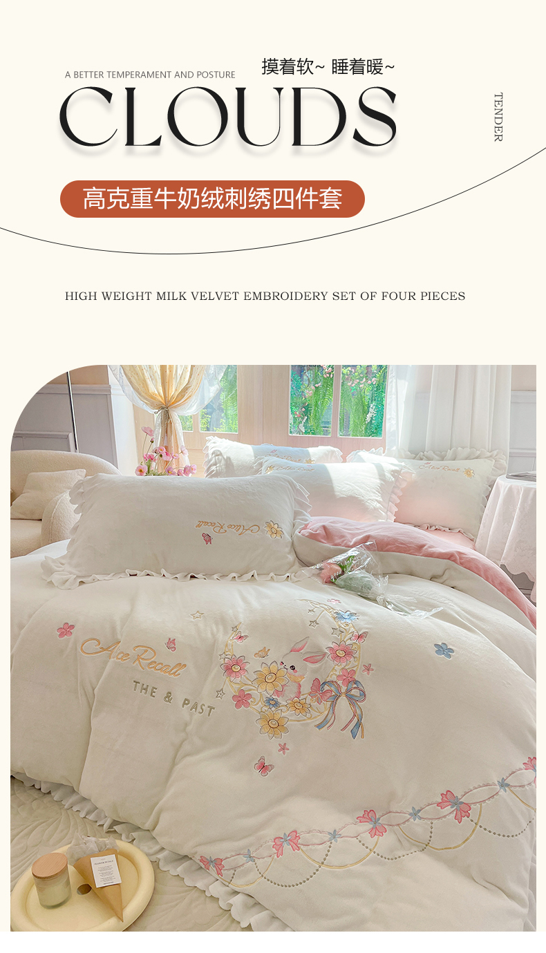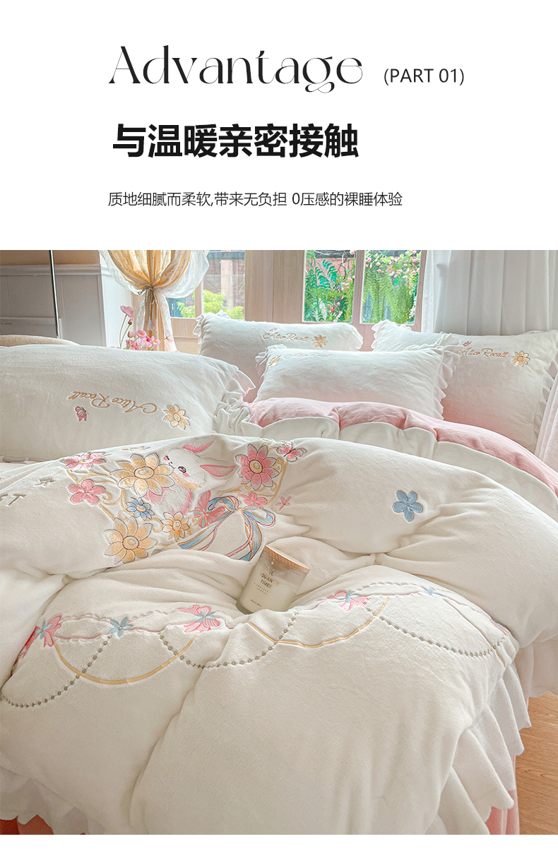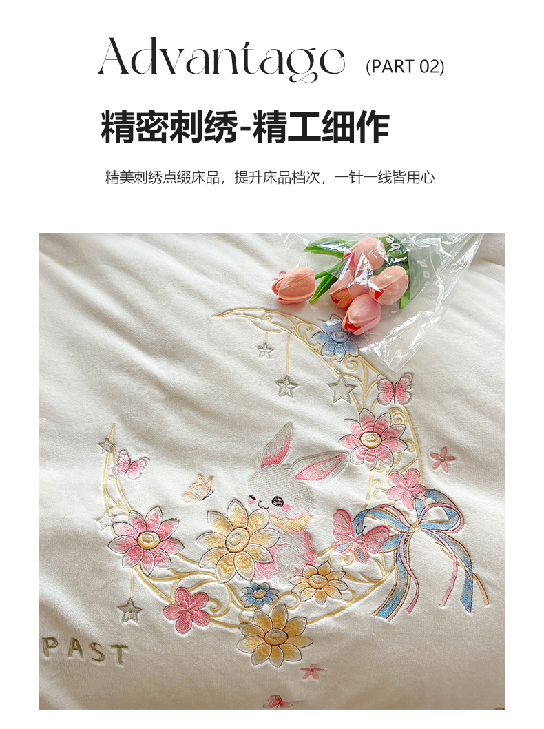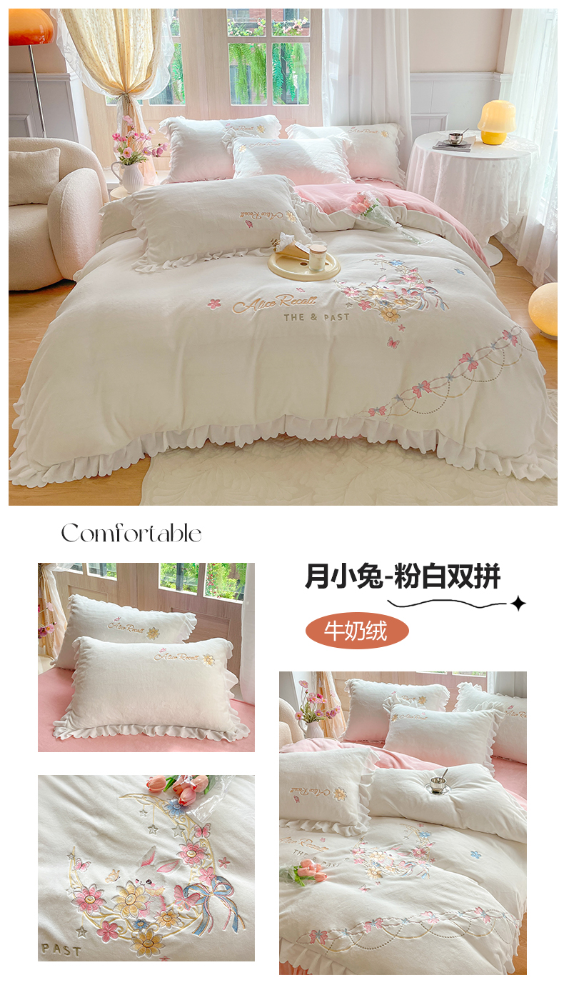 当前位置: 91家纺网 > 商品网购 > 床品套件 > 四件套 > 牛奶绒四件套 > 23直播爆款高克重刺绣牛奶绒四件套月小兔系列提供买家秀月小兔-粉白双拼