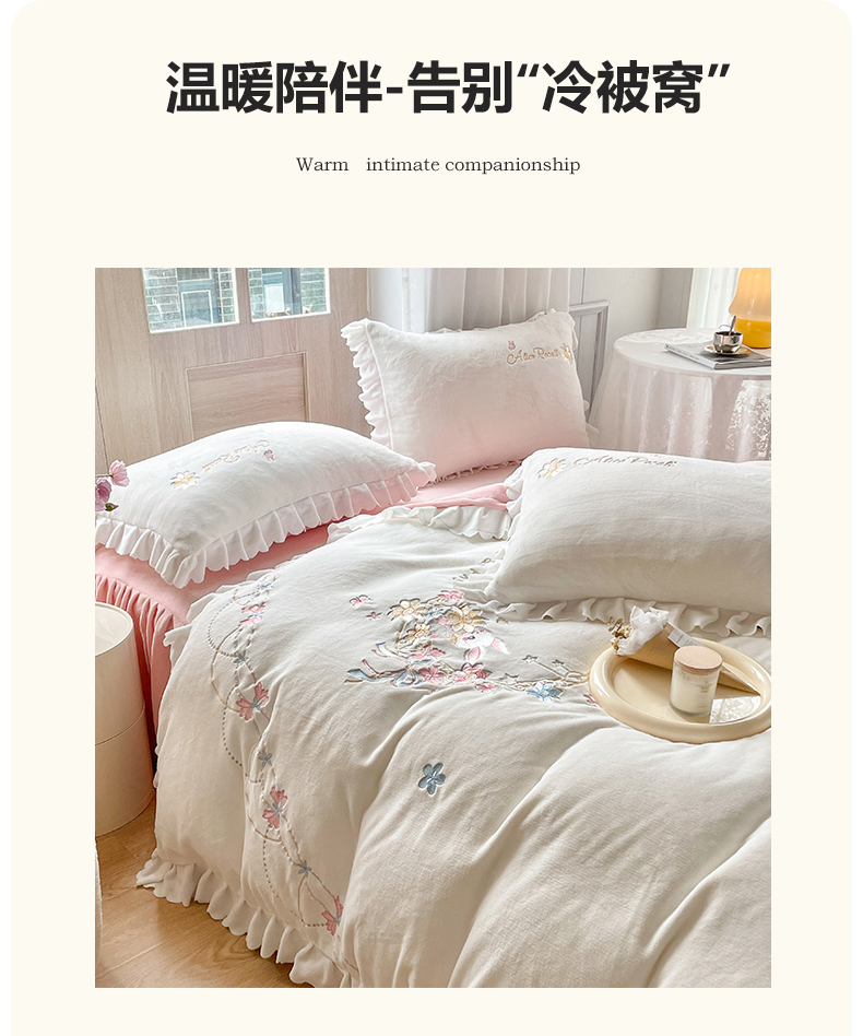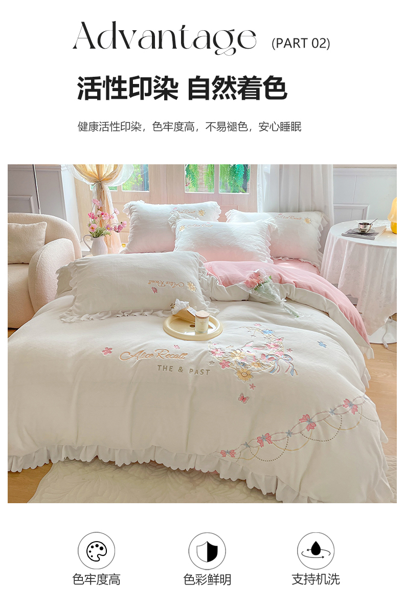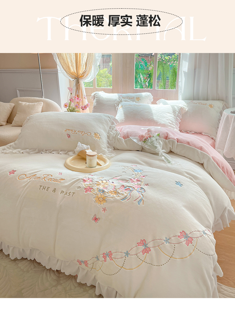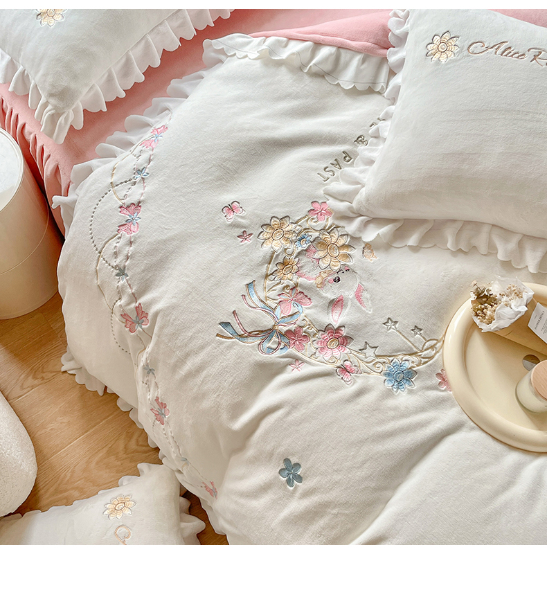 当前位置: 91家纺网 > 商品网购 > 床品套件 > 四件套 > 牛奶绒四件套 > 23直播爆款高克重刺绣牛奶绒四件套月小兔系列提供买家秀月小兔-粉白双拼