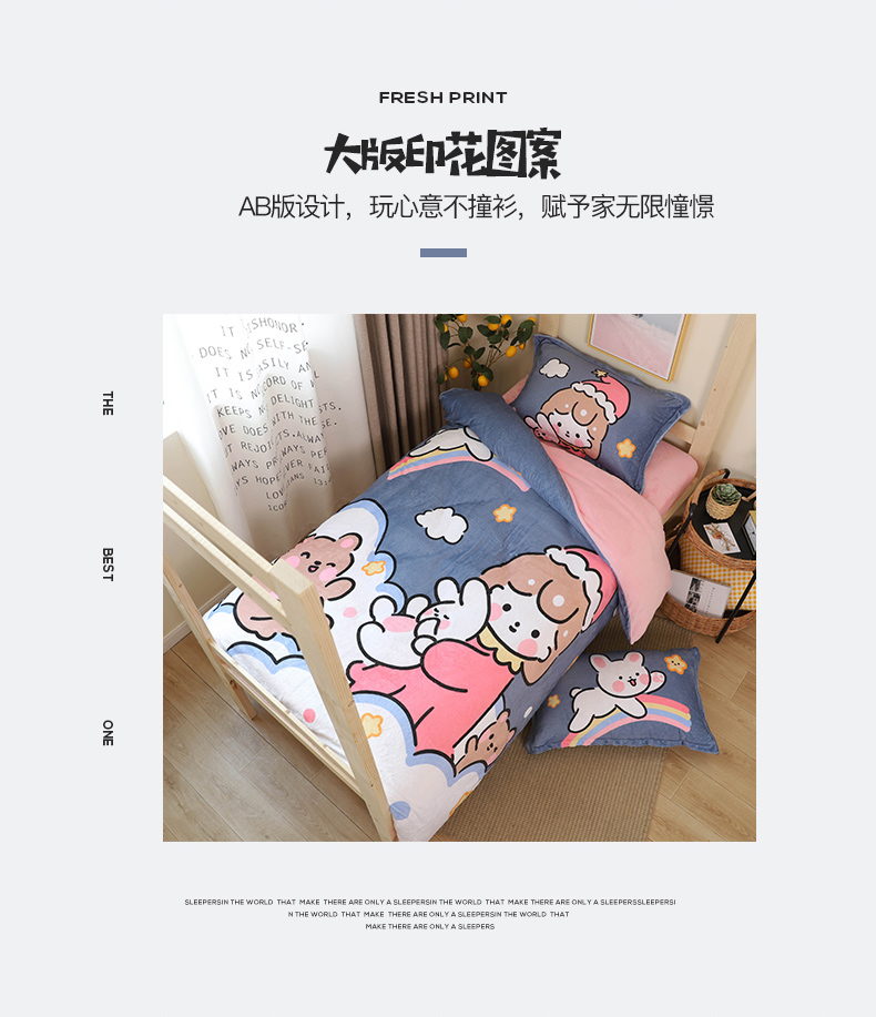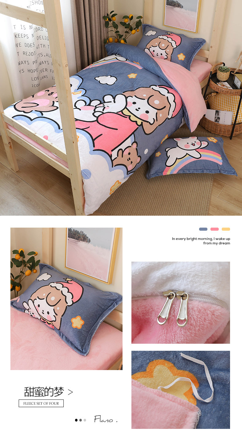 当前位置: 91家纺网 > 商品网购 > 床品套件 > 三件套 > 宅部落 2023新款大版卡通牛奶绒三件套 13.甜蜜的梦