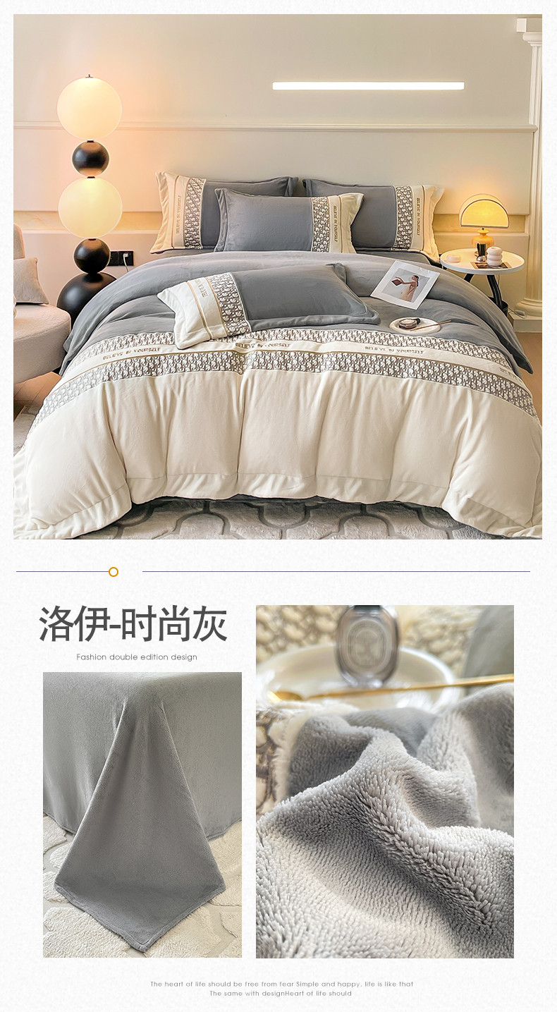 当前位置: 91家纺网 > 商品网购 > 床品套件 > 四件套 > 牛奶绒四件套 > 慕色家纺 2023新款牛奶绒绣花四件套-洛伊 洛伊-时尚灰