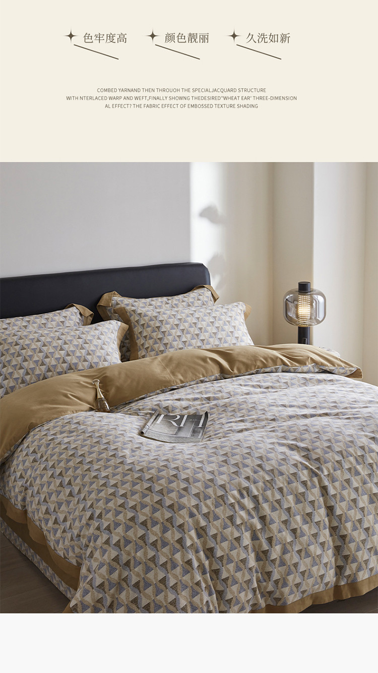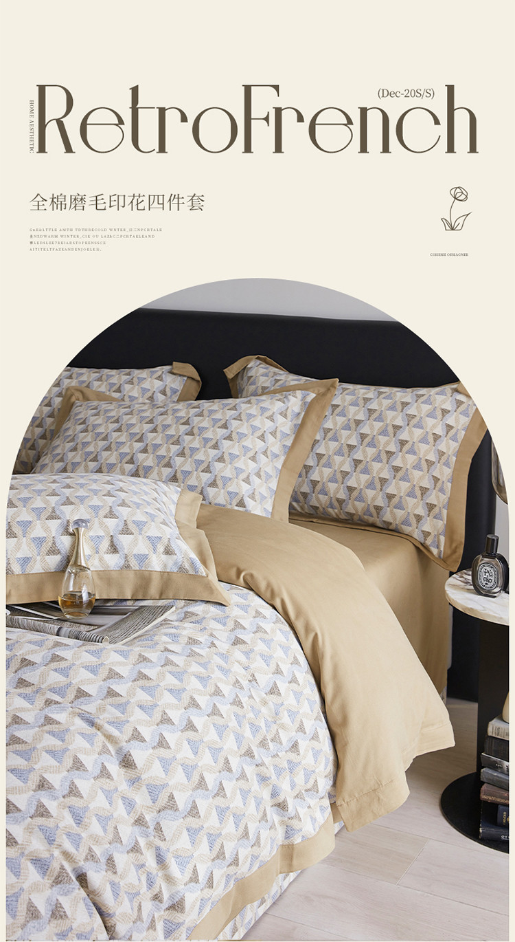 商品名称:嘉汀兰 2023新款全棉臻品磨毛系列四件套-拼角款 莱尔(拼角款)