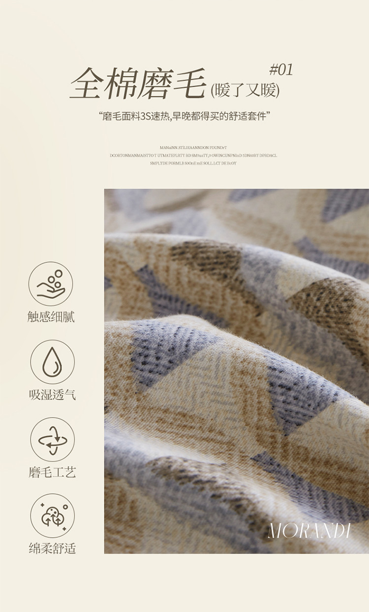 嘉汀兰 2023新款全棉臻品磨毛系列四件套-拼角款 莱尔(拼角款)