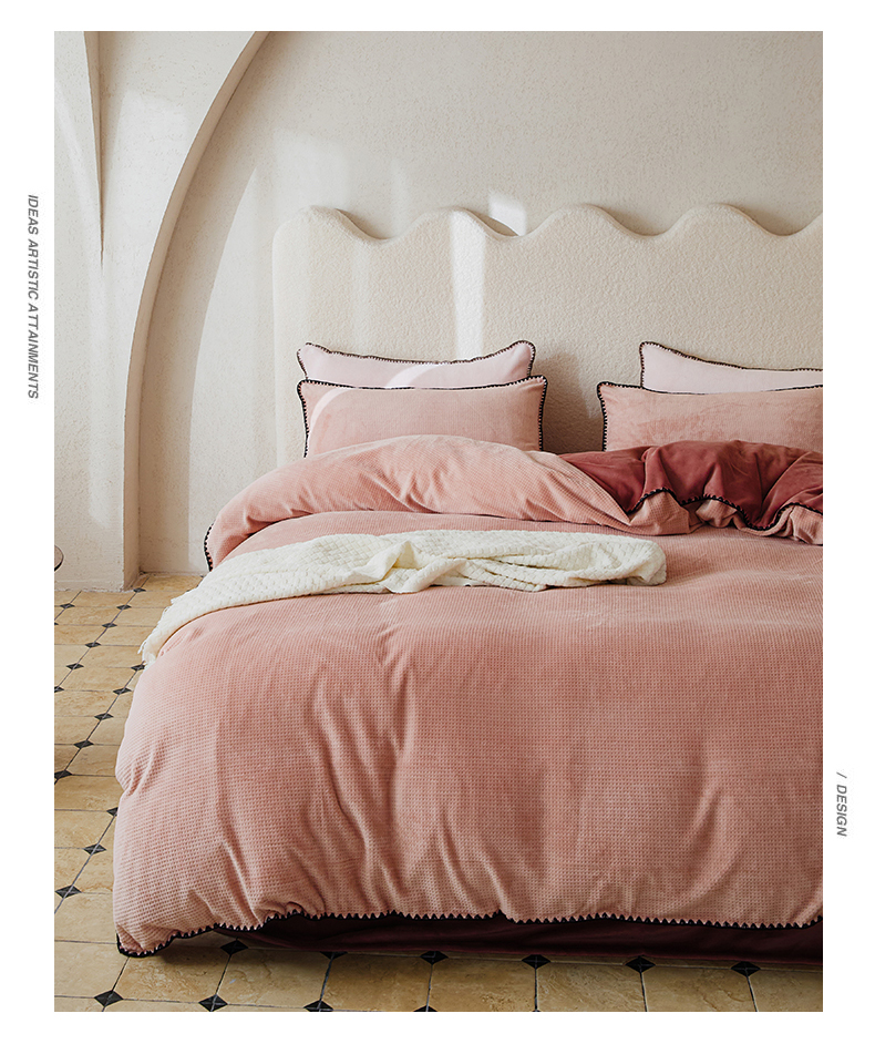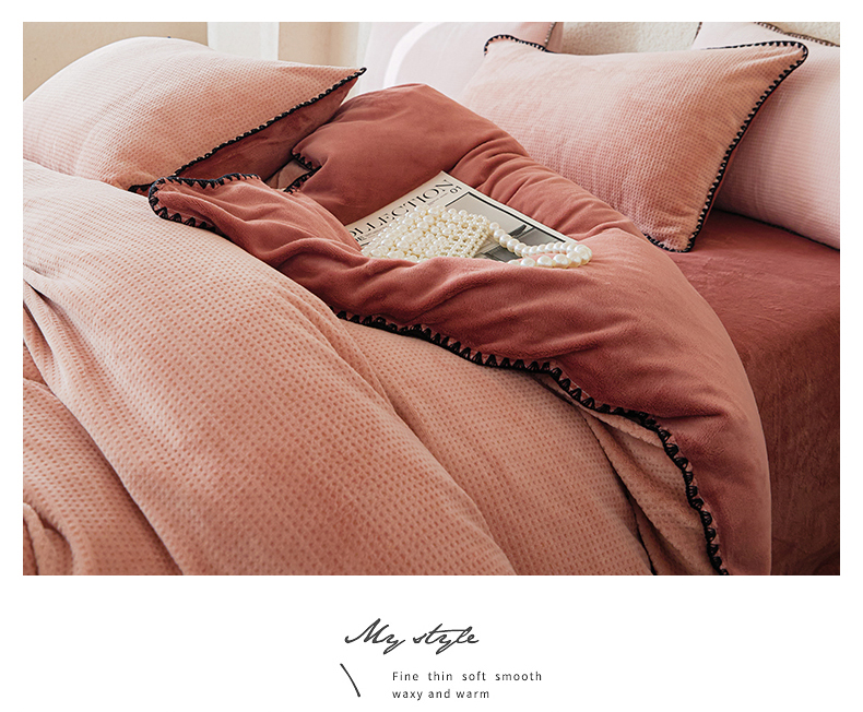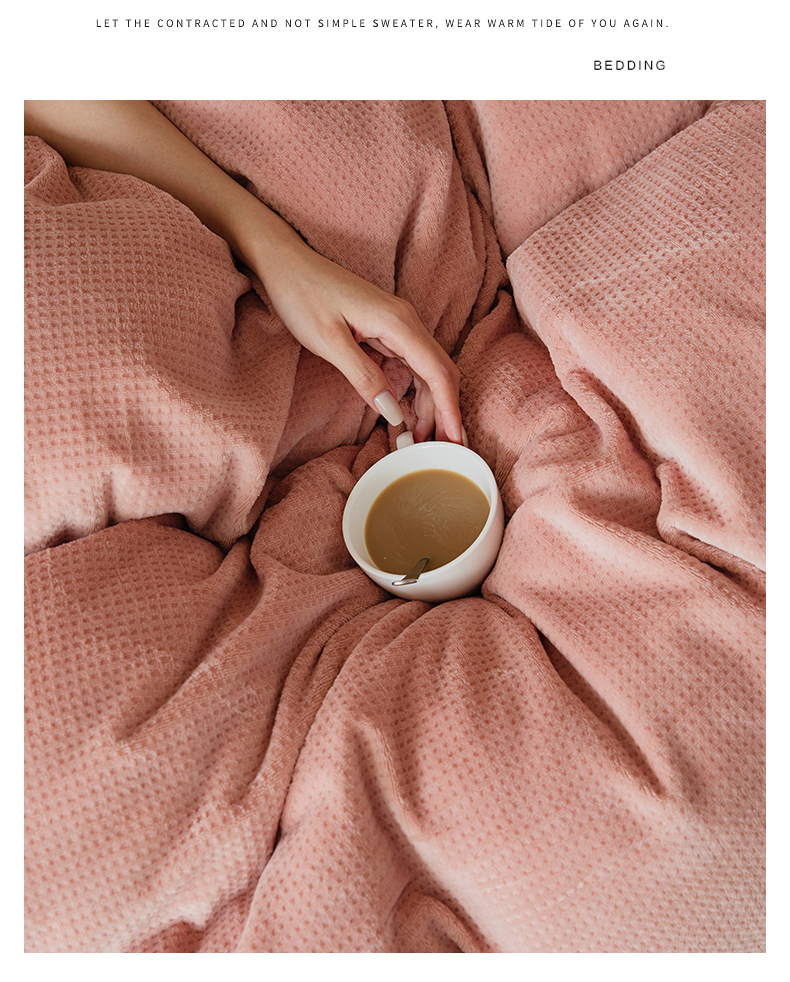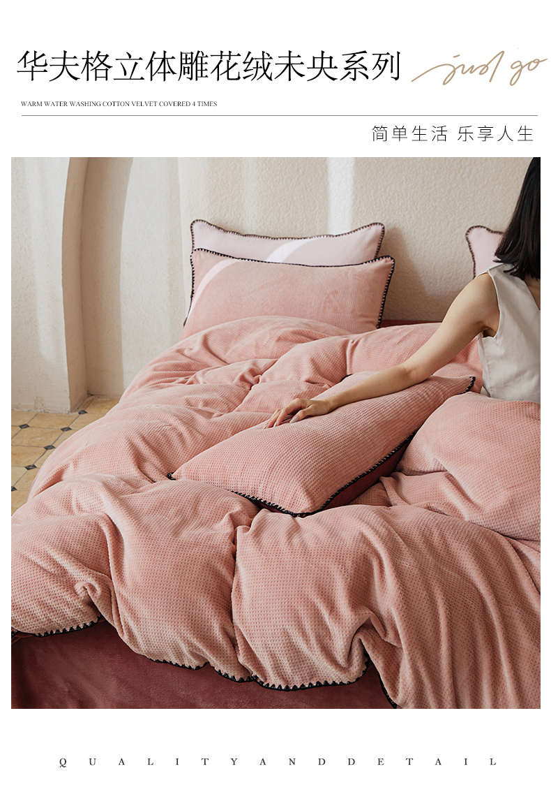 当前位置: 91家纺网 > 商品网购 > 床品套件 > 四件套 > 雕花绒四件套 > 新款华夫格立体雕花绒四件套-未央系列 未央-胭脂红