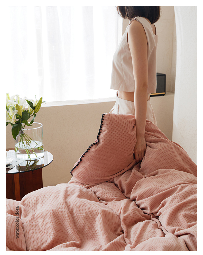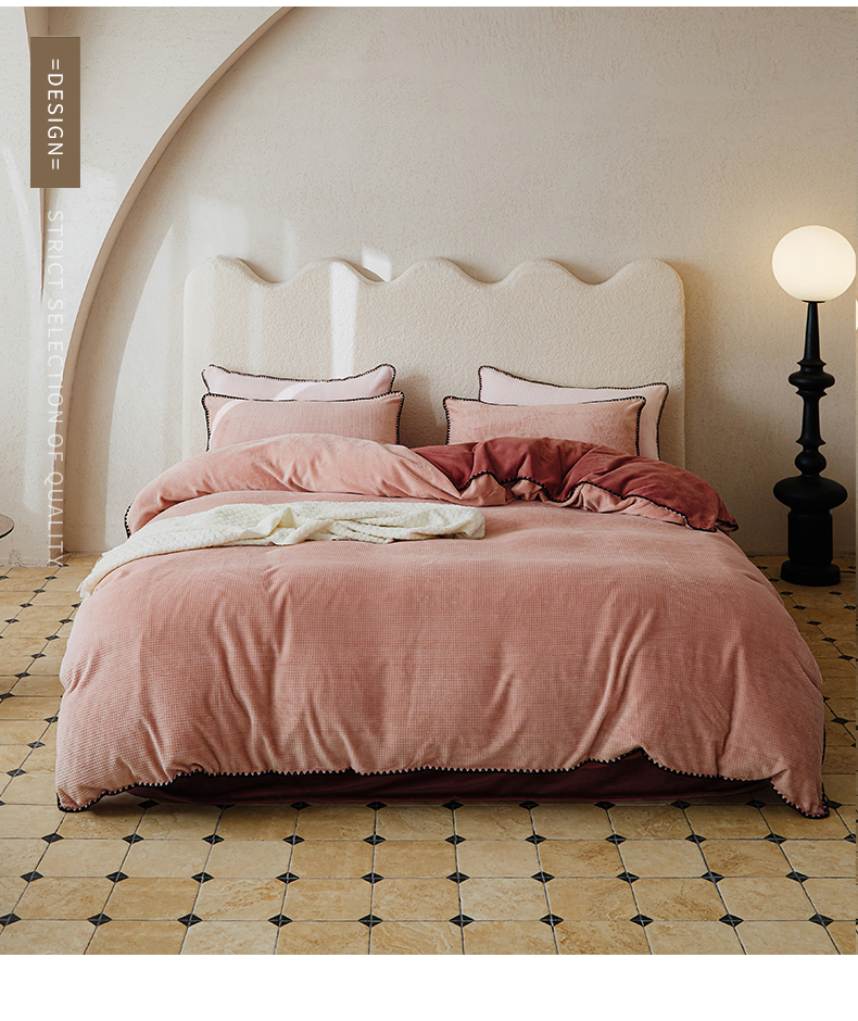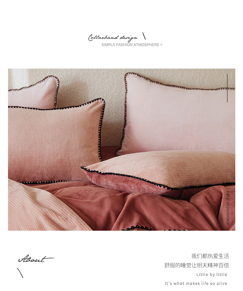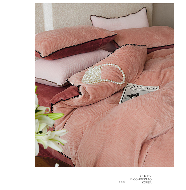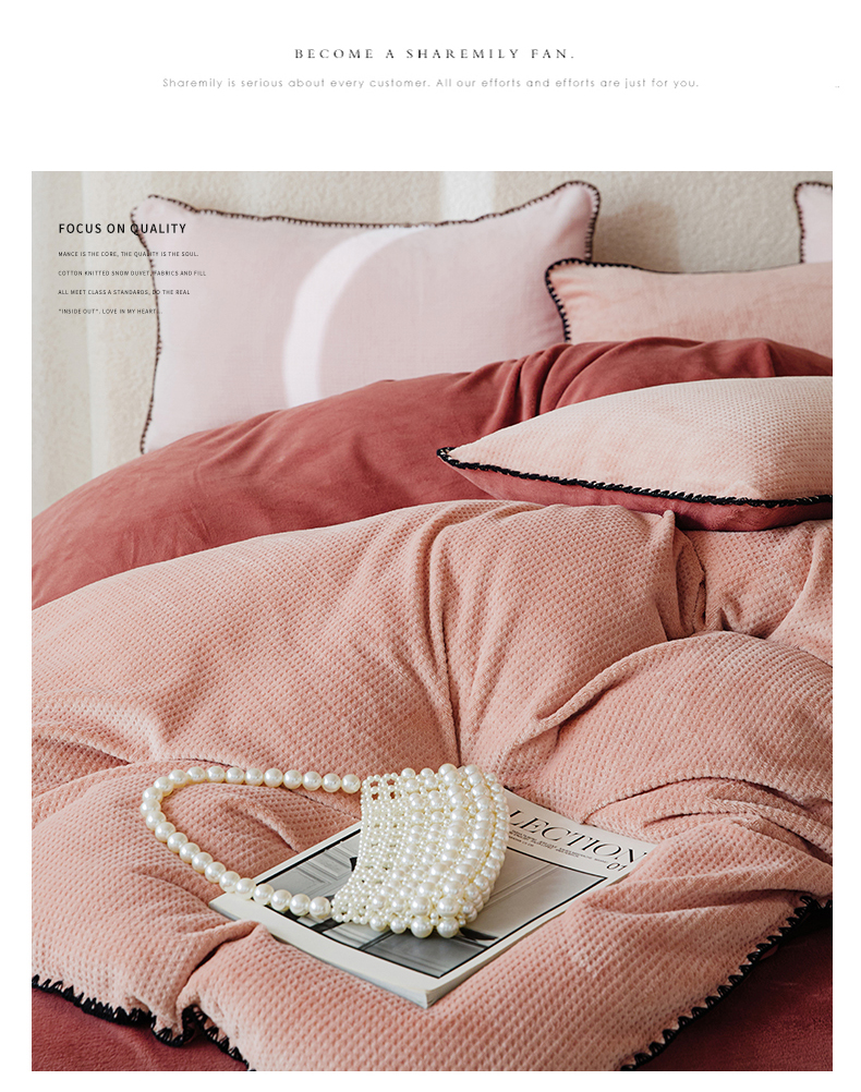 当前位置: 91家纺网 > 商品网购 > 床品套件 > 四件套 > 雕花绒四件套 > 新款华夫格立体雕花绒四件套-未央系列 未央-胭脂红