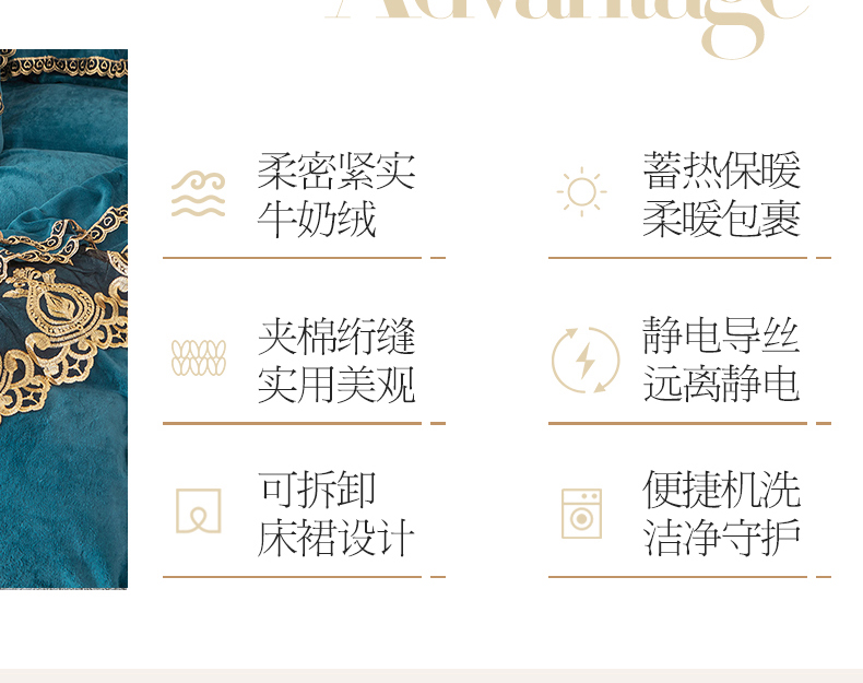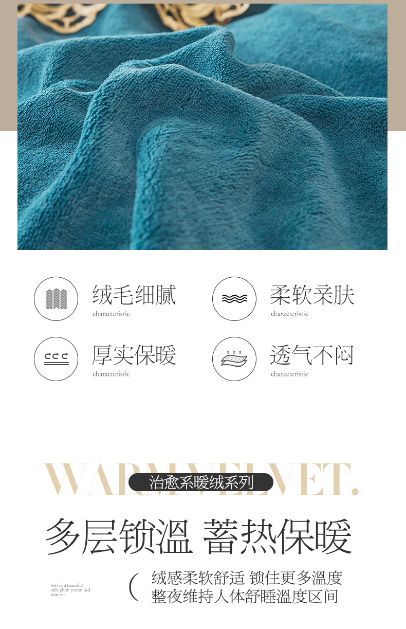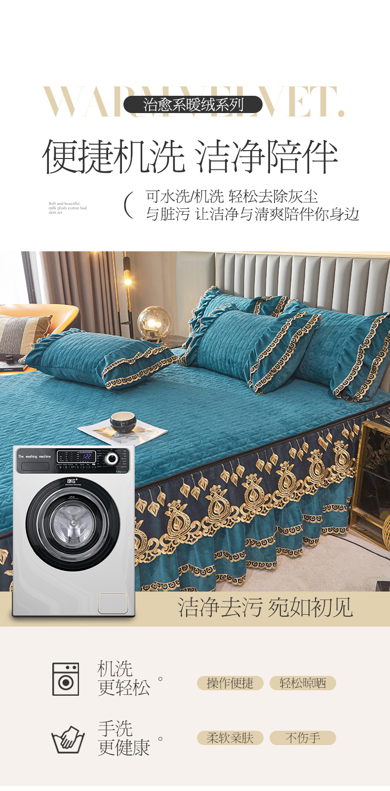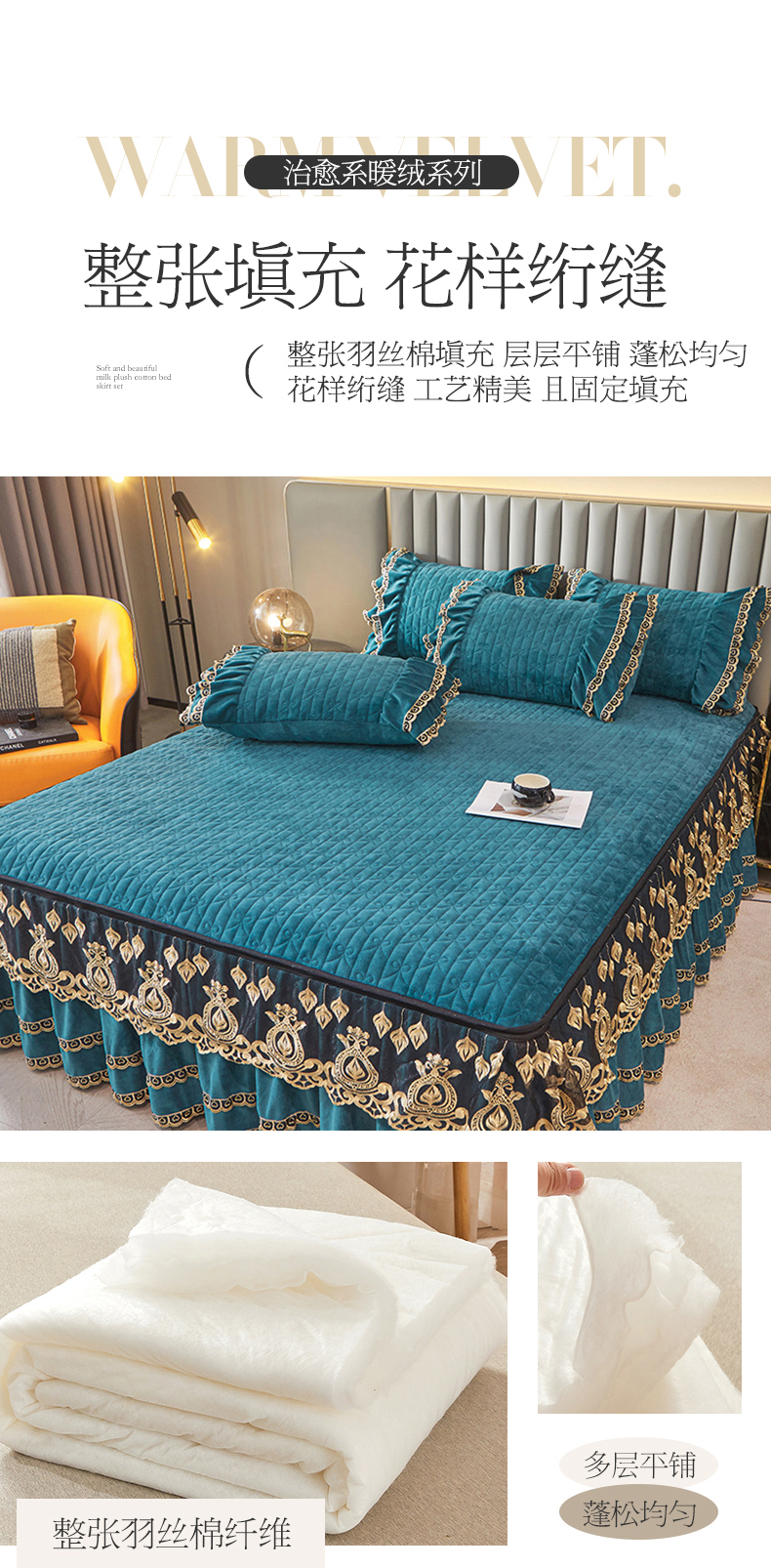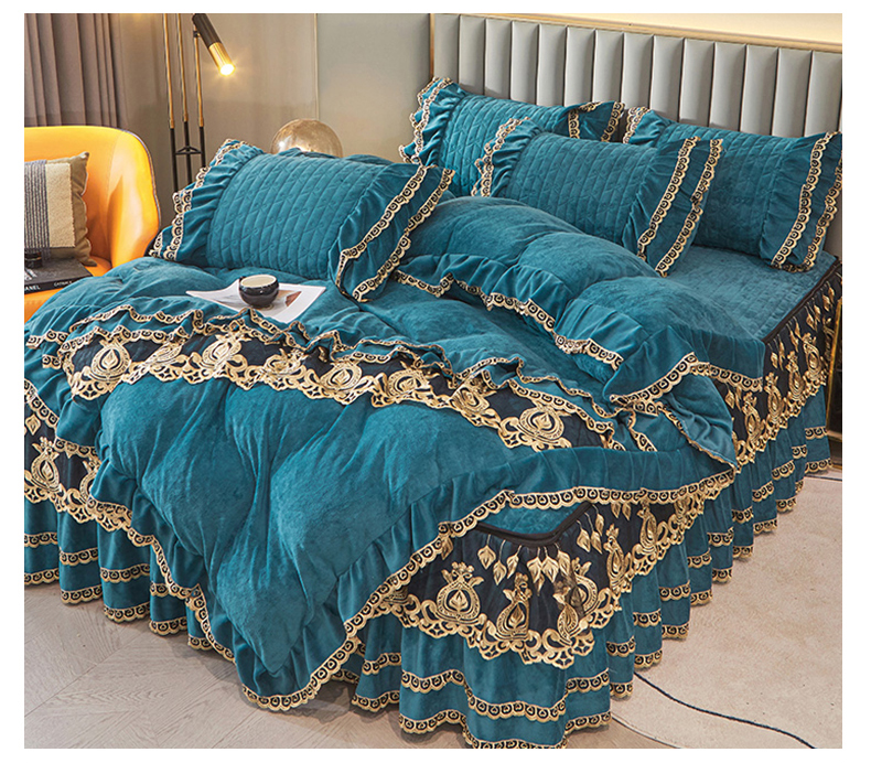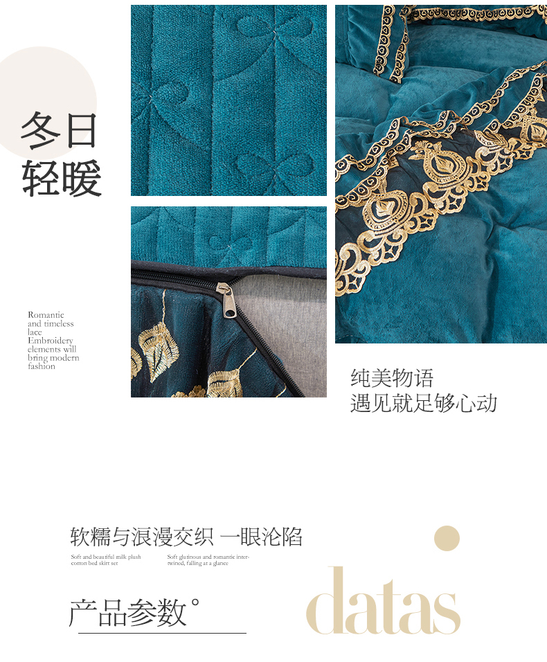 • 91家纺网 家纺一手货源 找家纺 虹星家纺 2023新款牛奶绒夹棉蕾丝可拆卸床裙系列四件套 梦幻巴黎 海兰