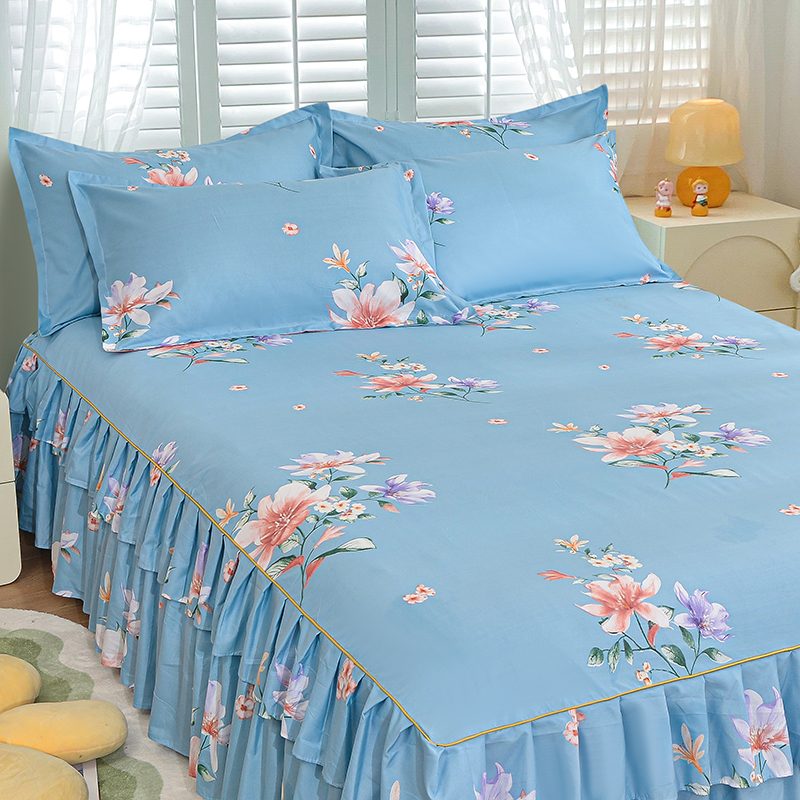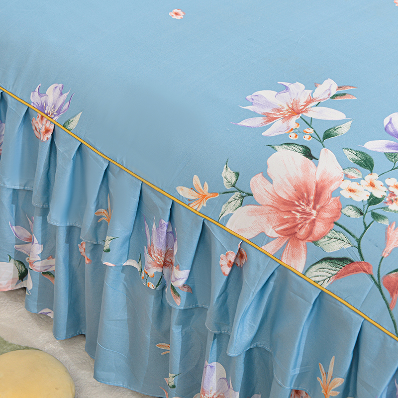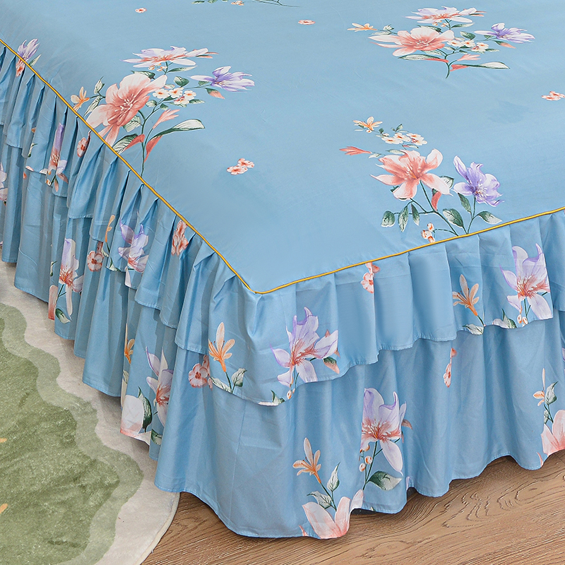 小雨家纺 2026新款芦荟棉单件床裙及床裙三件套-第二批 花间彩云-蓝
