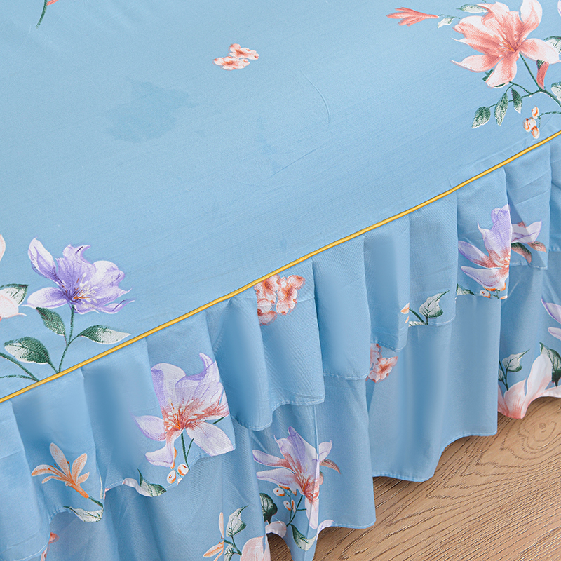 • 91家纺网 家纺一手货源 找家纺 小雨家纺 2026新款芦荟棉单件床裙及床裙三件套-第二批 花间彩云-蓝