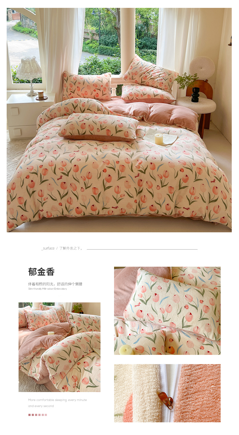 仟网汇 2023新款双面印花牛奶绒四件套 郁金香