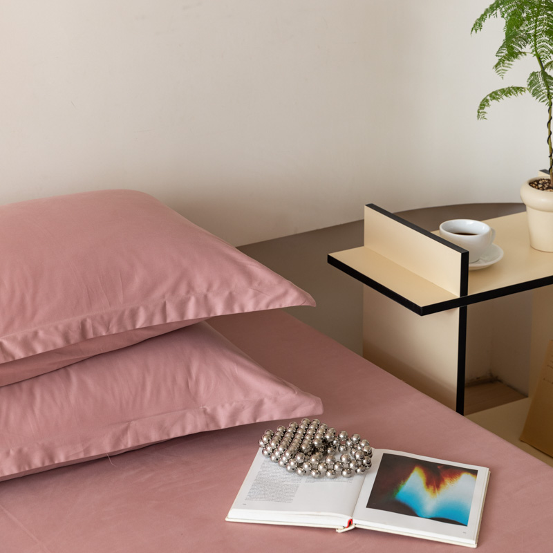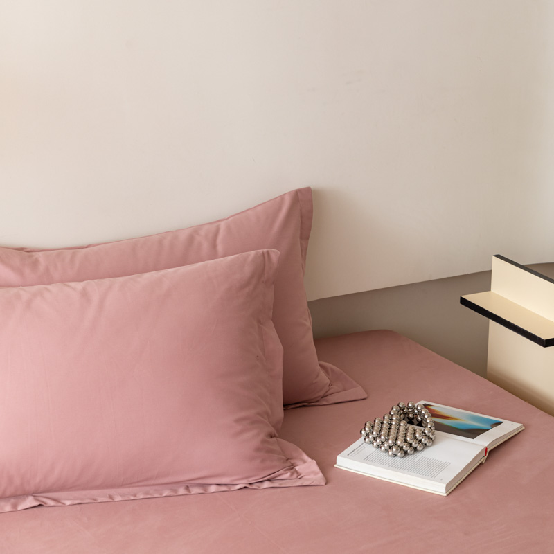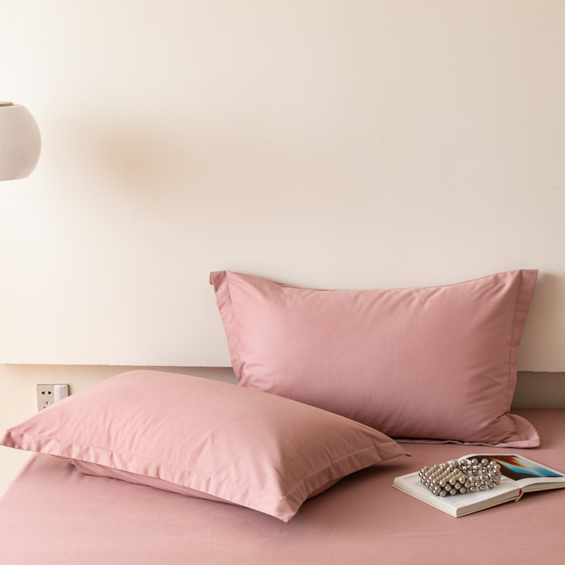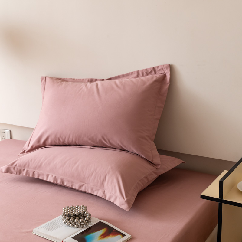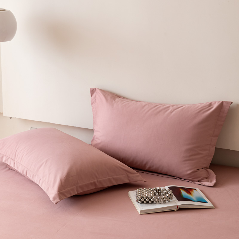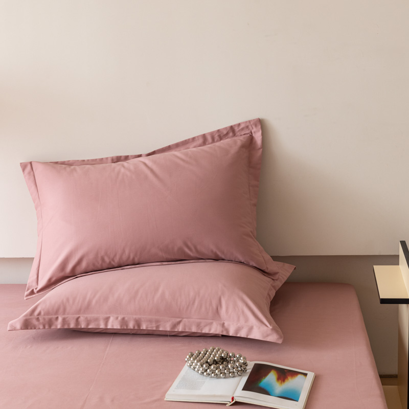怡家居 2023新款全棉100支磨毛纯色单品枕套 雾玫粉