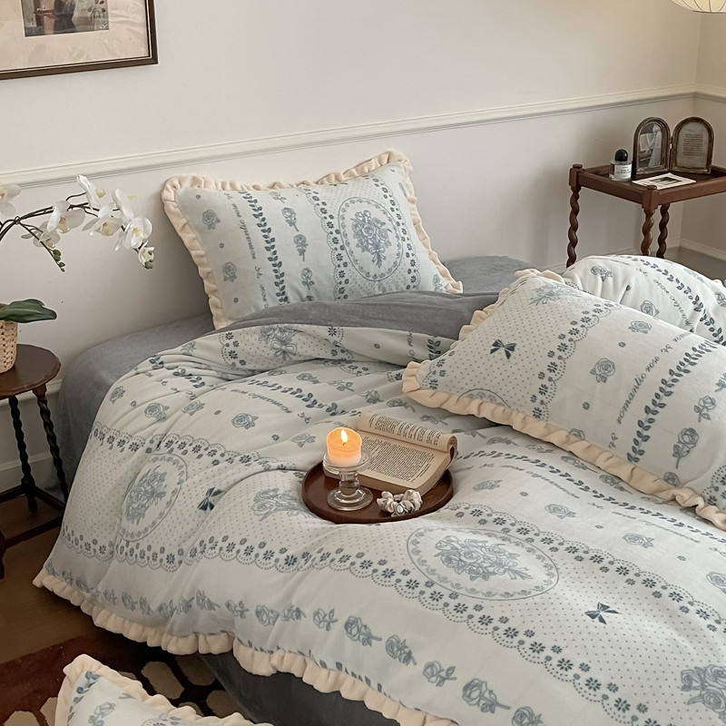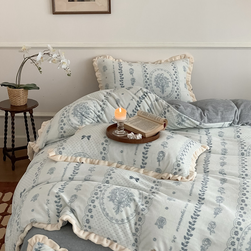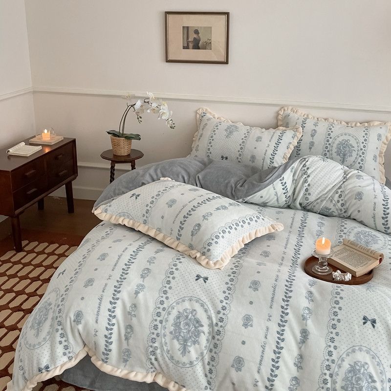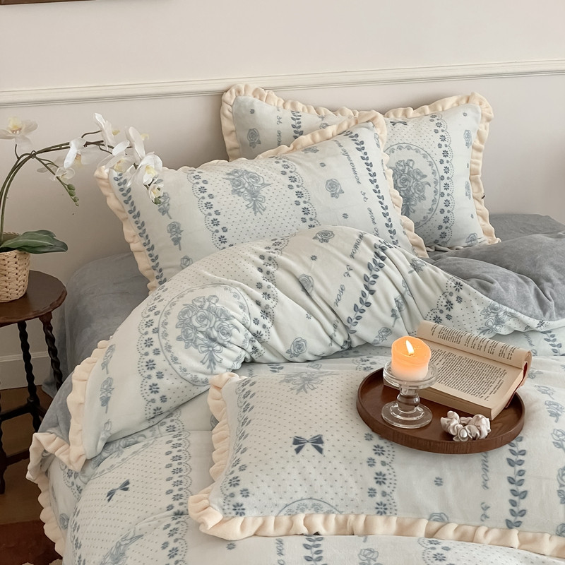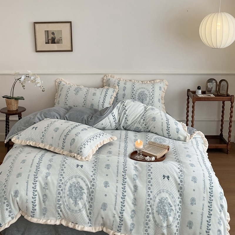 商品名称:潘朵拉 2023新款美拉德风牛奶绒花边款四件套 晨晓