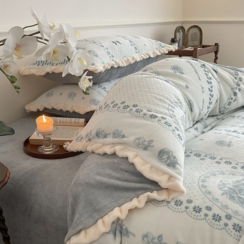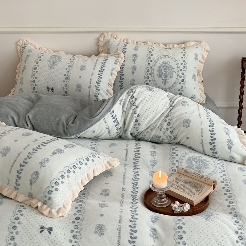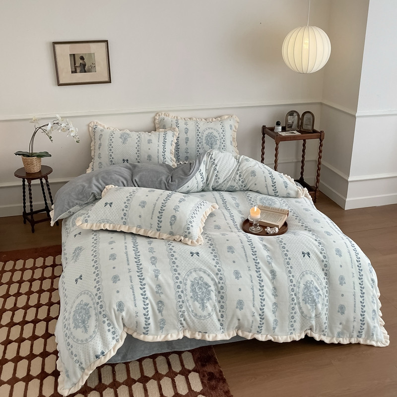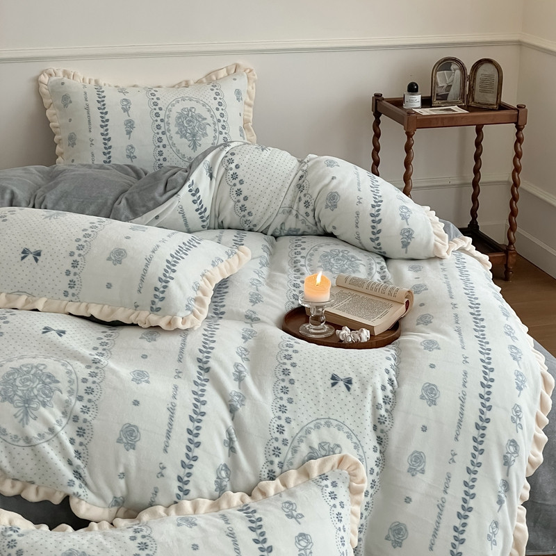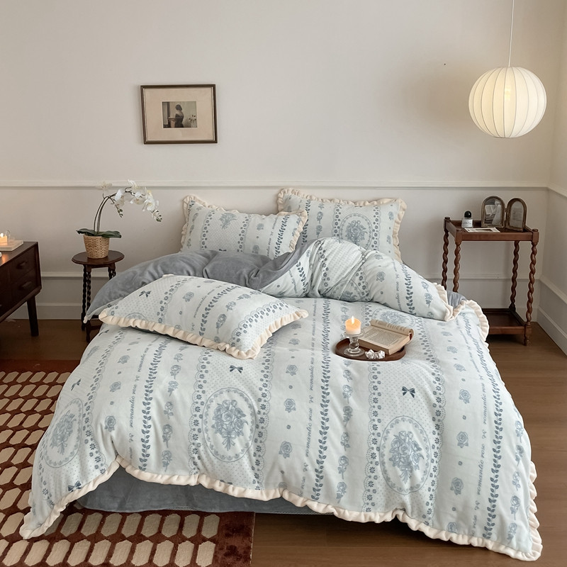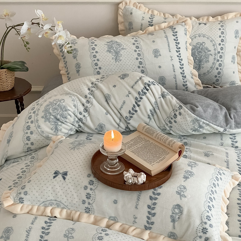 (总)潘朵拉 2023年新款豆豆绒花边牛奶绒四件套,仙芽,兰溪,半眠,向晚,小奶兔,樱桃丸子,粉萝,紫烟,花城,薄荷味,青雅