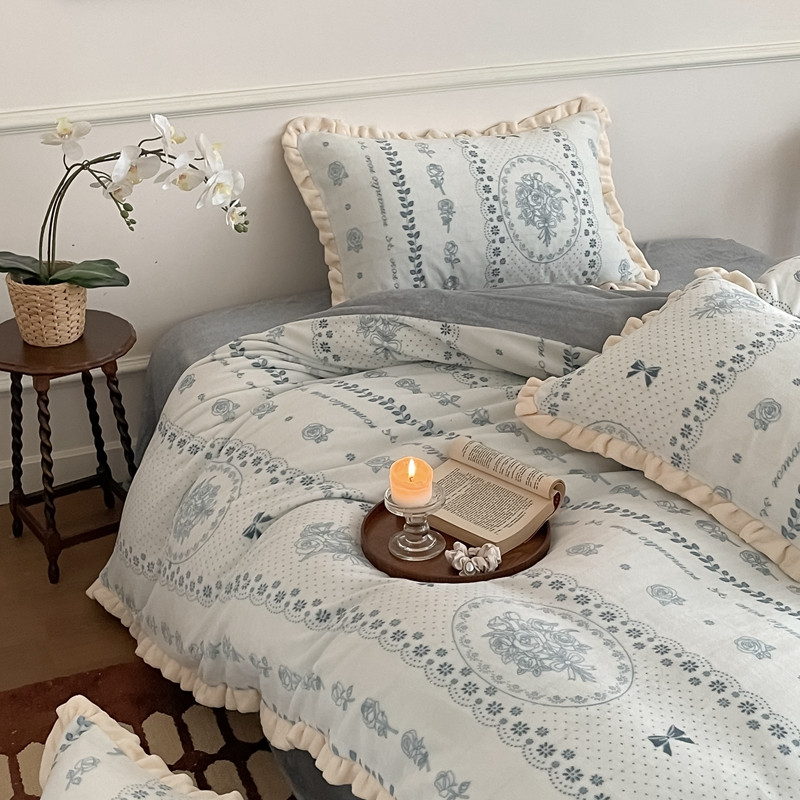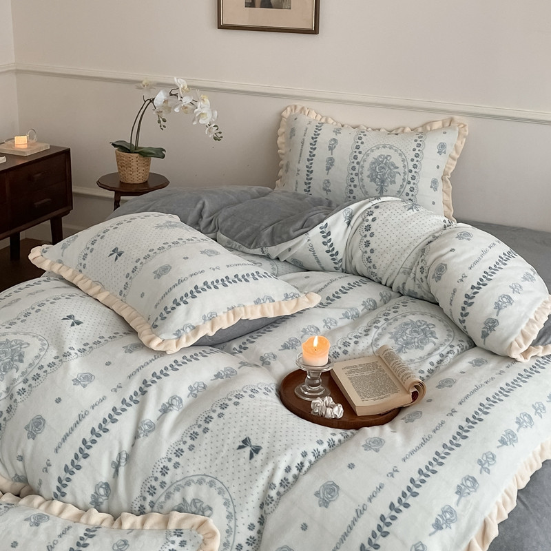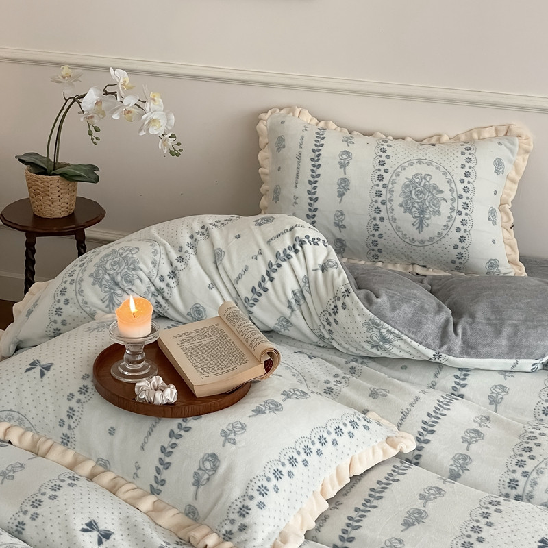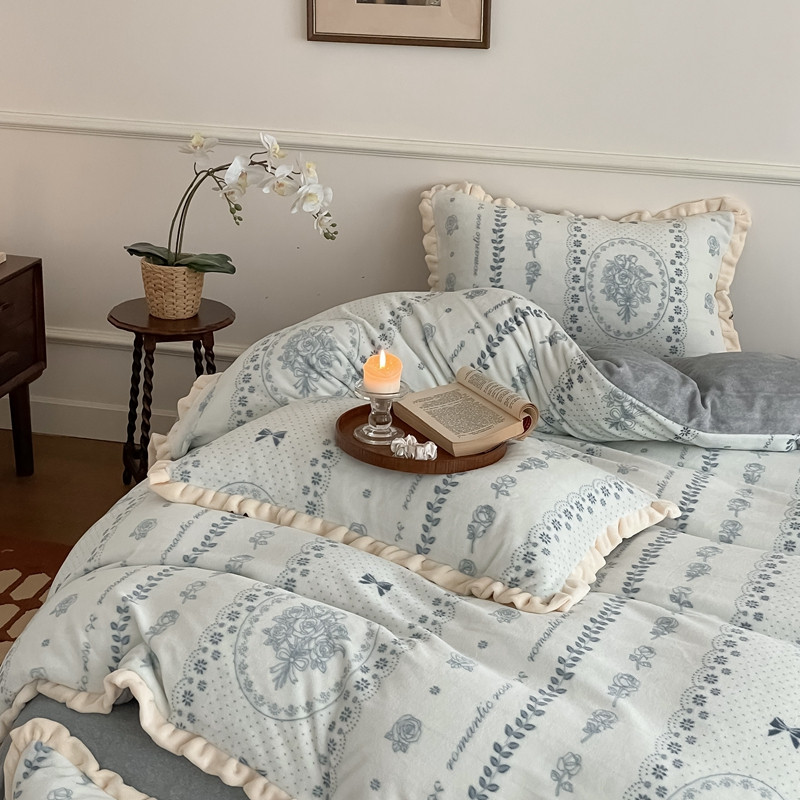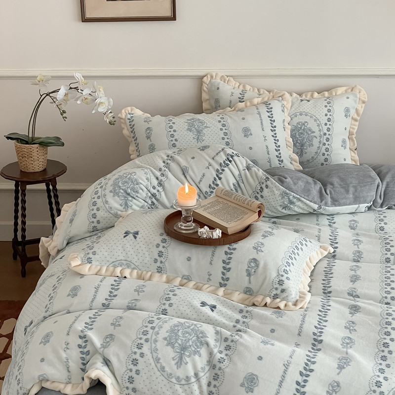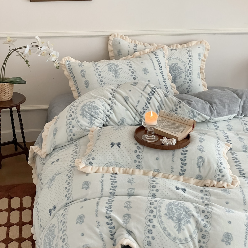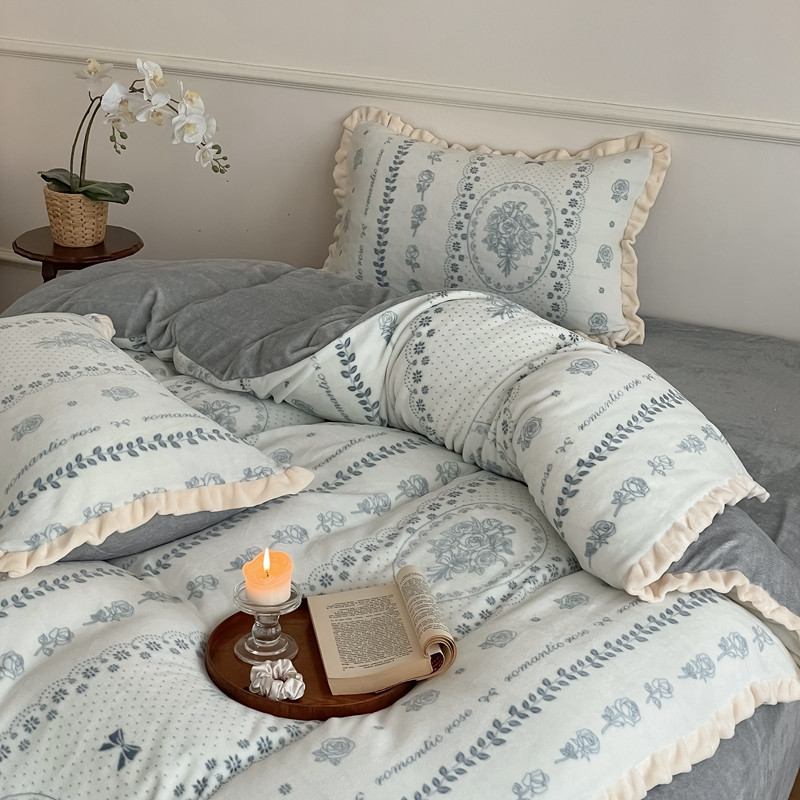 (总)潘朵拉 2023年新款豆豆绒花边牛奶绒四件套,仙芽,兰溪,半眠,向晚,小奶兔,樱桃丸子,粉萝,紫烟,花城,薄荷味,青雅