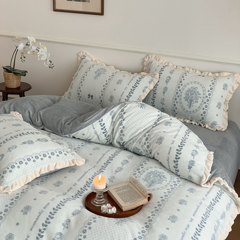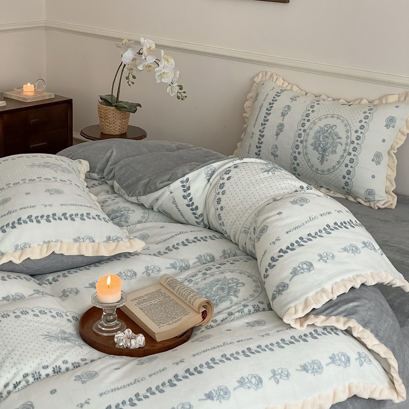潘朵拉 2023新款美拉德风牛奶绒花边款四件套 晨晓