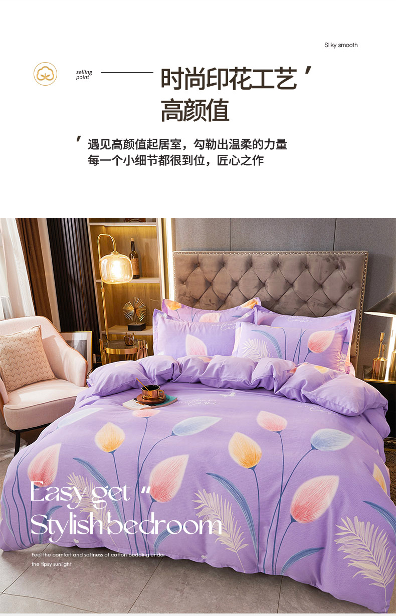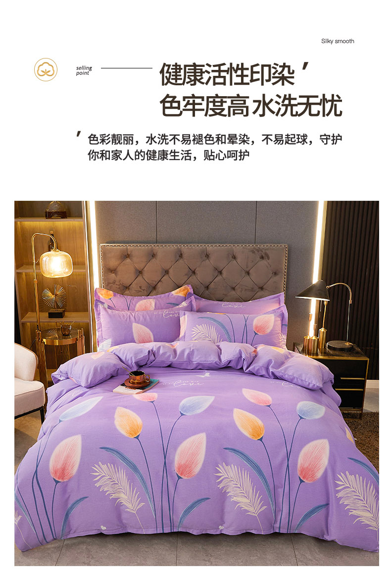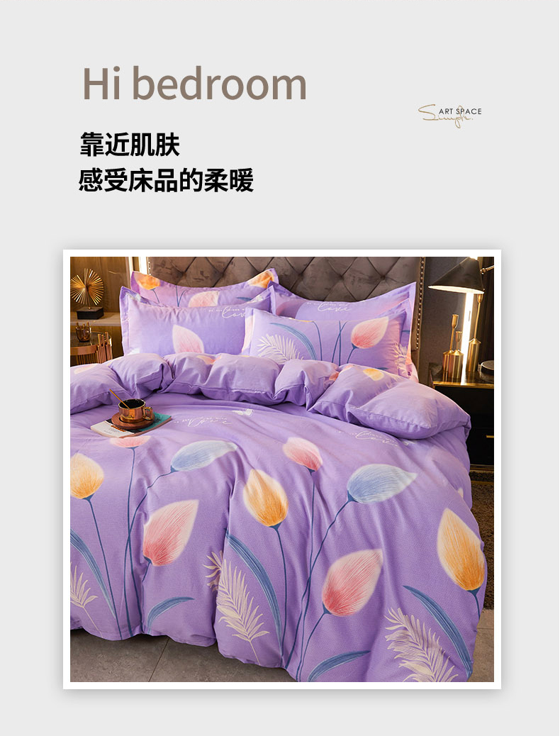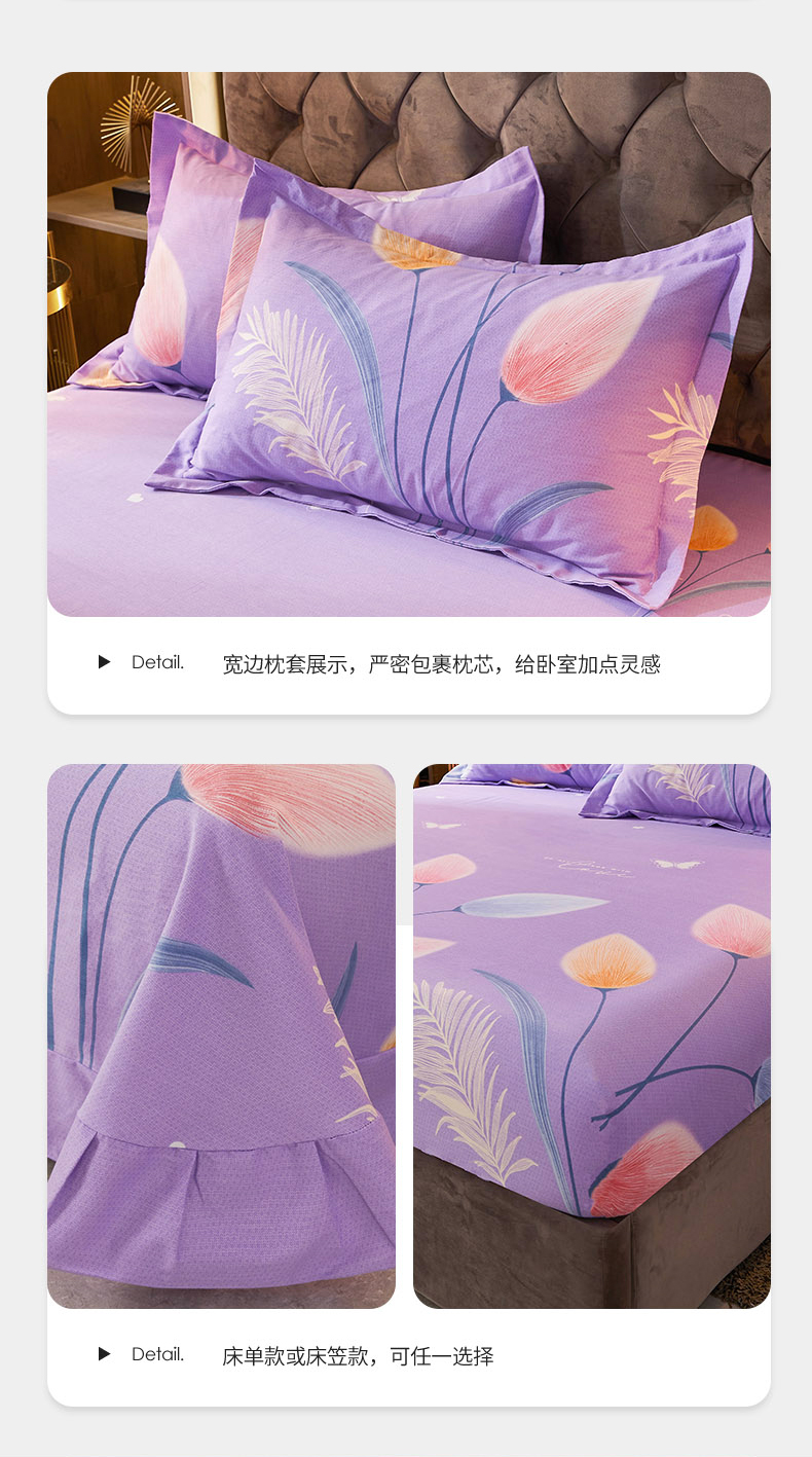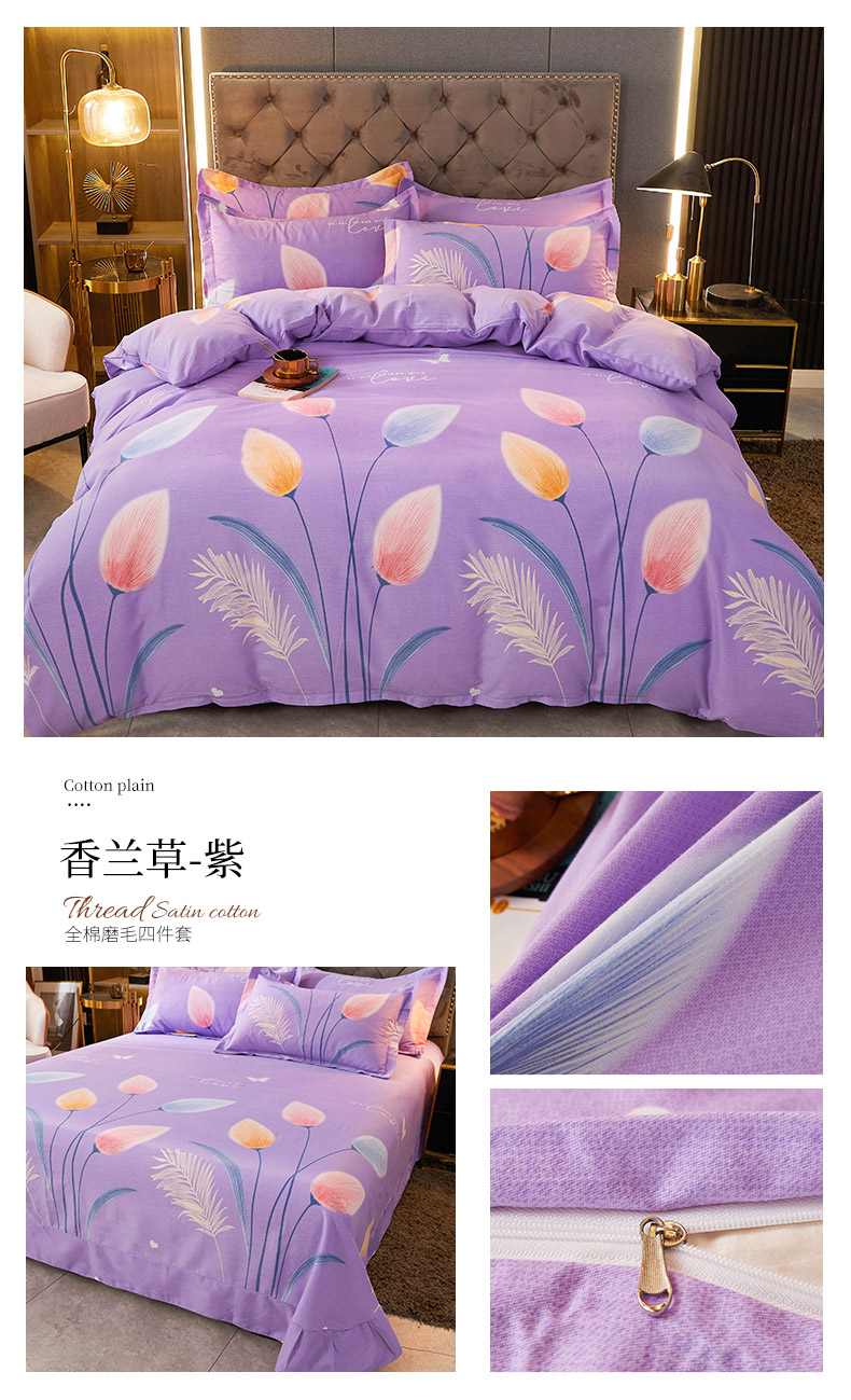 当前位置: 91家纺网 > 商品网购 > 床品套件 > 四件套 > 普通磨毛四件套 > 伊而梦 2023新款全棉磨毛印花四件套系列四件套 香兰草-紫
