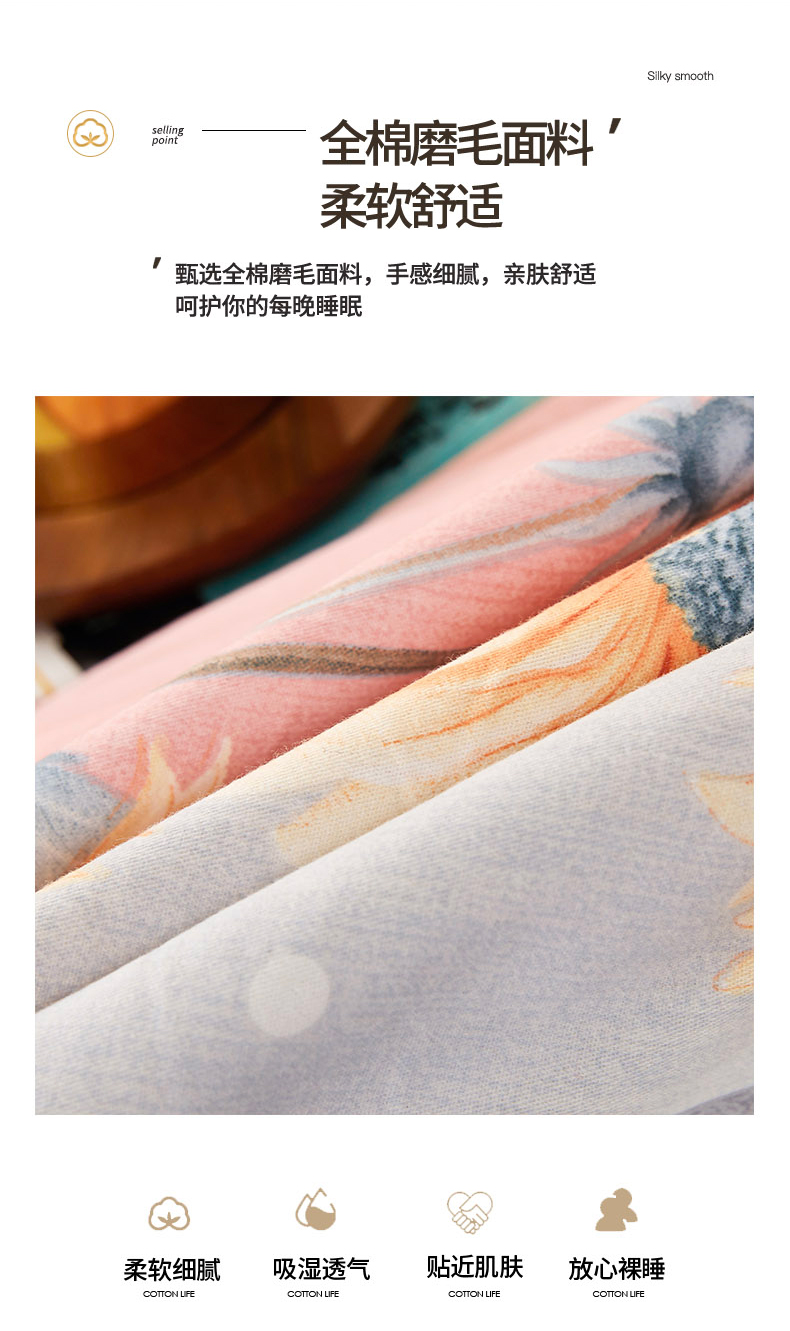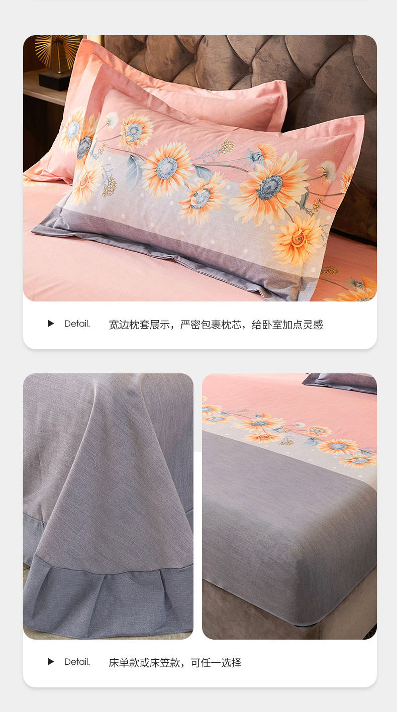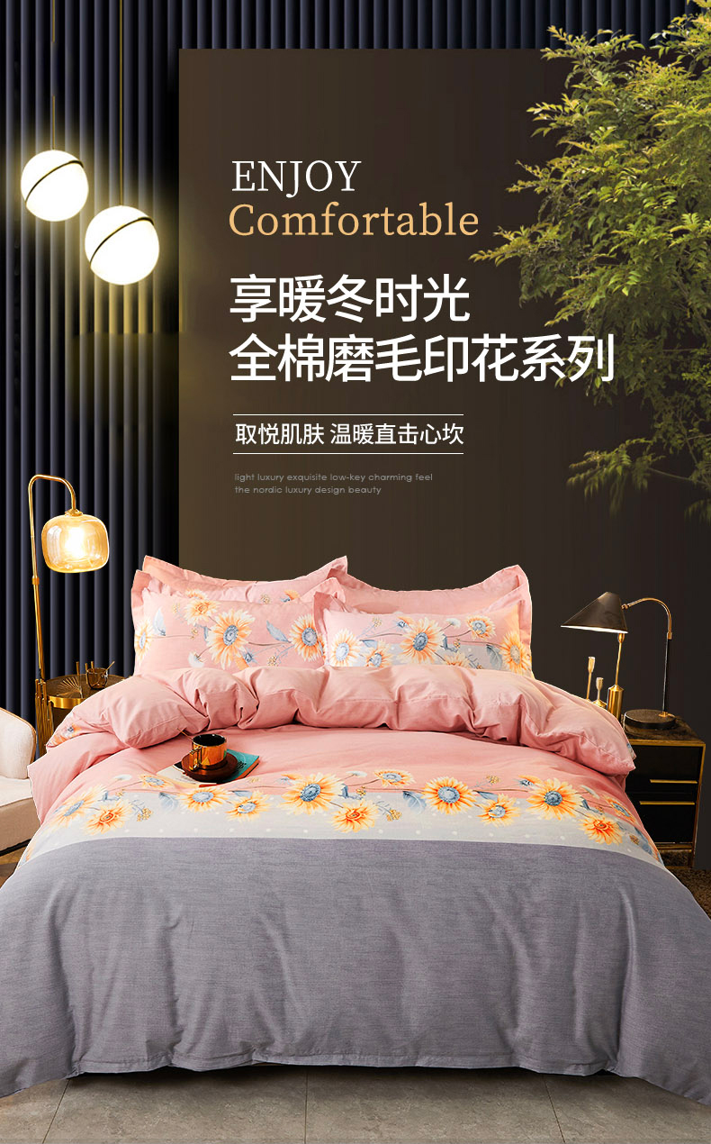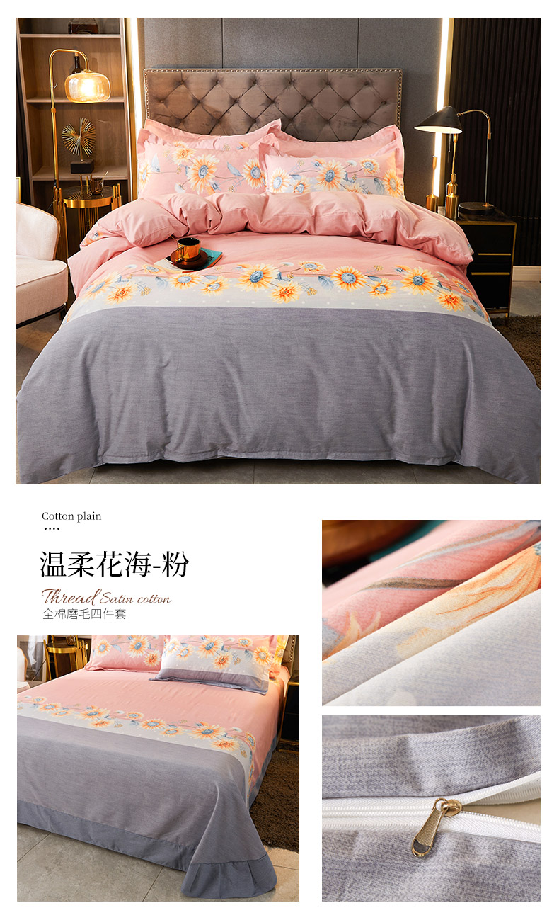 当前位置: 91家纺网 > 商品网购 > 床品套件 > 四件套 > 普通磨毛四件套 > 伊而梦 2023新款全棉磨毛印花四件套系列四件套 温柔花海-粉