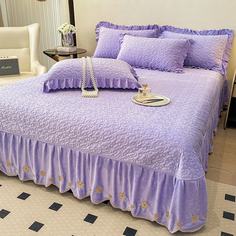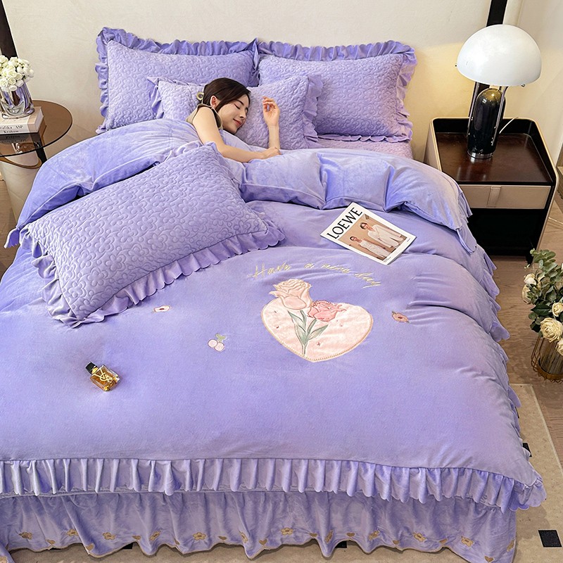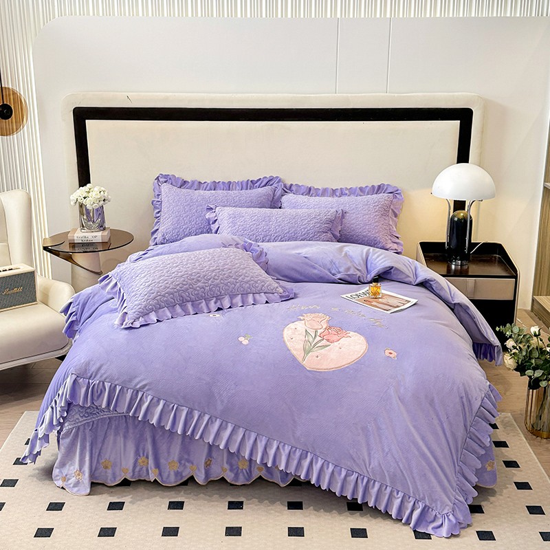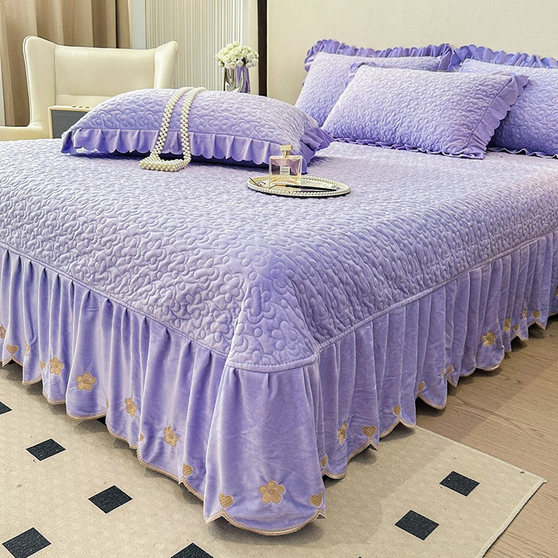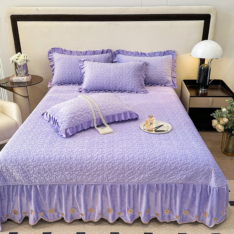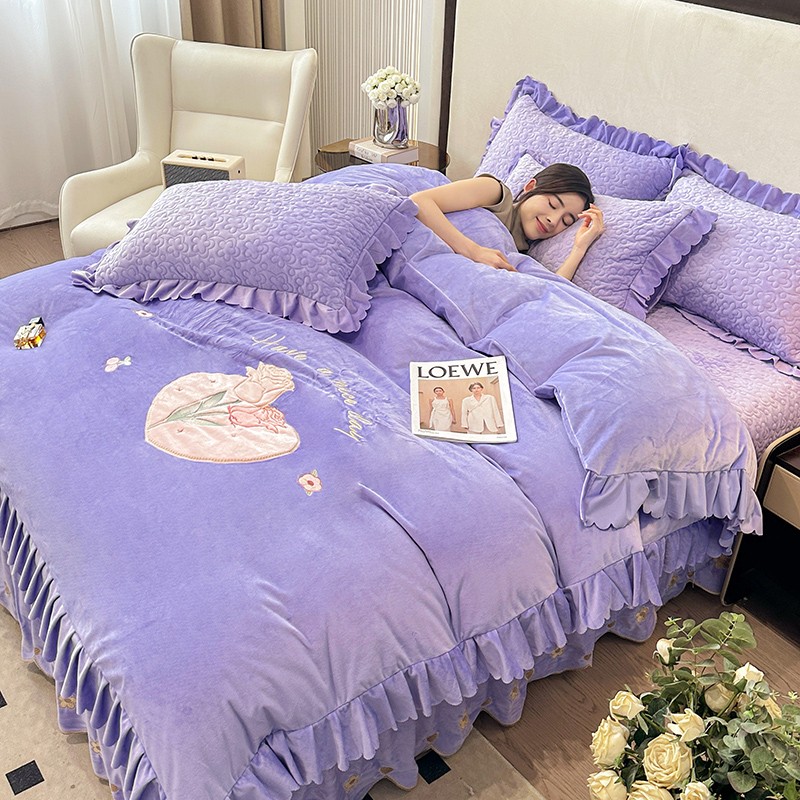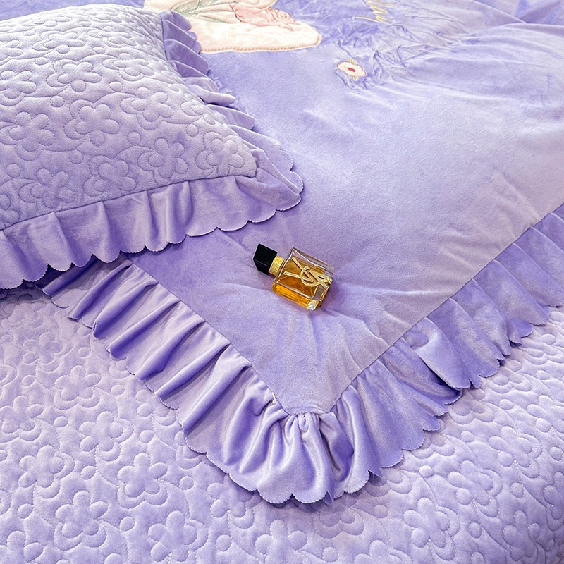 漫布云2025秋冬新款11斤230g全消光牛奶绒夹棉床盖款四件套纯色蕾丝花边刺绣床裙款床盖,蝶恋花-梦幻紫, 蝶恋花-嫩黄, 蝶恋花-新芽绿 ,蝶恋花-婴儿蓝 ,蝶恋花-樱花粉