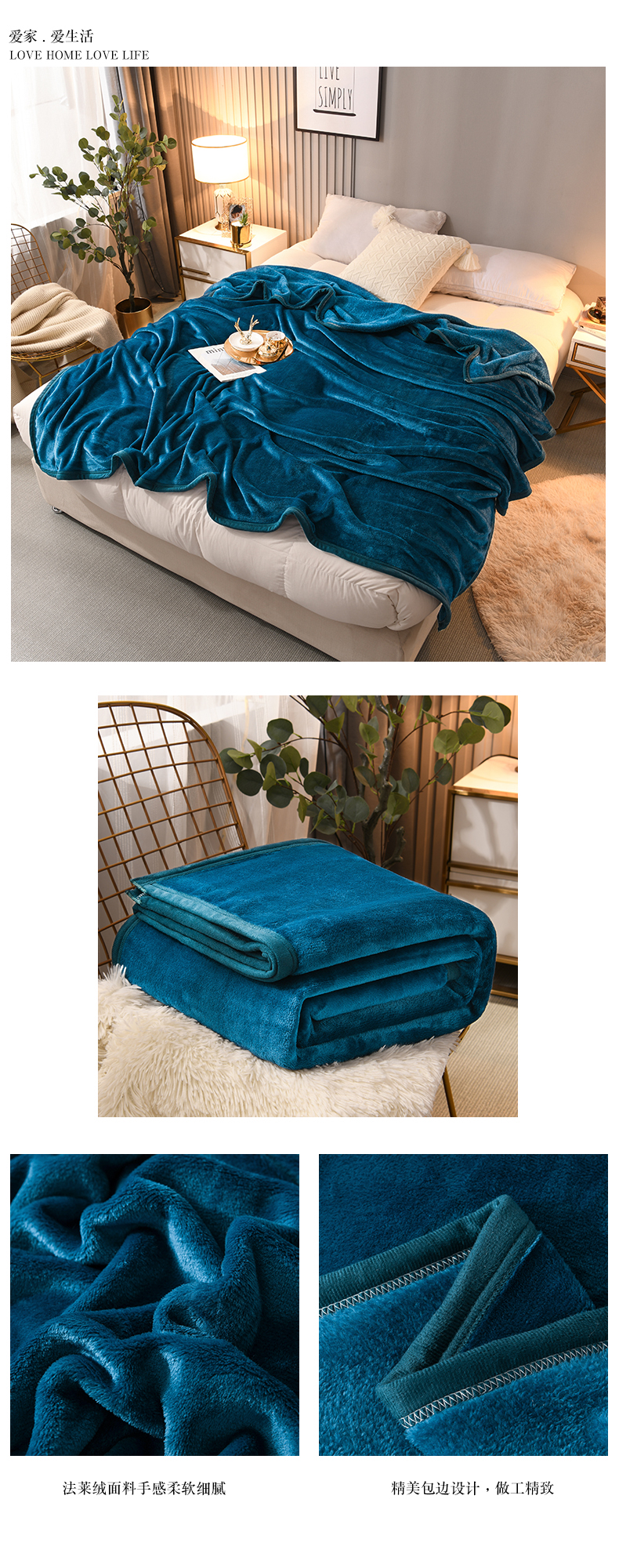 商品名称:仟人梦 2024新款纯色法莱绒毛毯多功能毛毯 孔雀绿