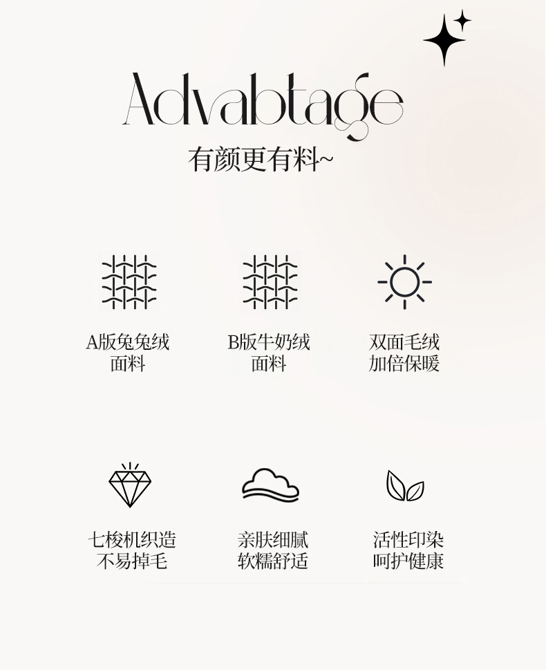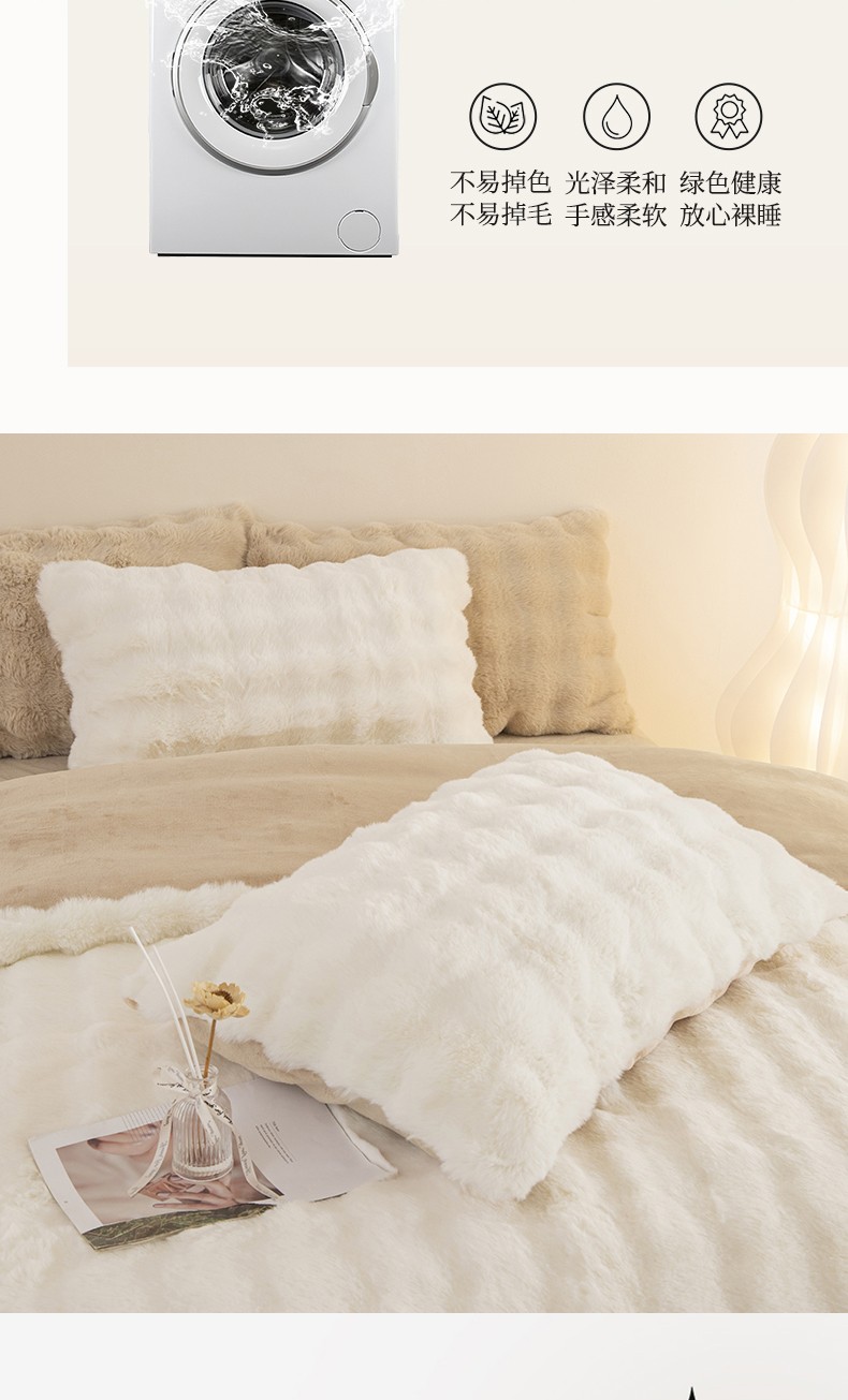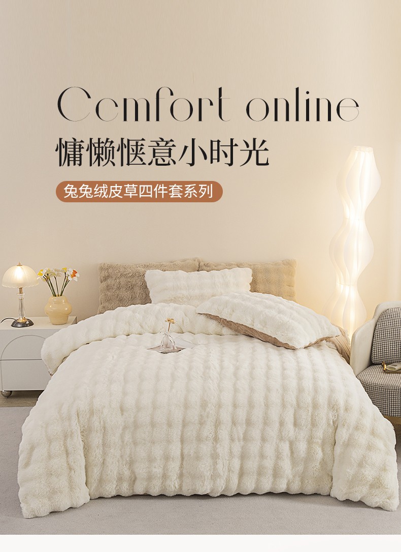 商品名称:畅畅家纺 2023新款加厚AB版大泡泡绒皮草兔毛四件套 大泡泡奶白咖