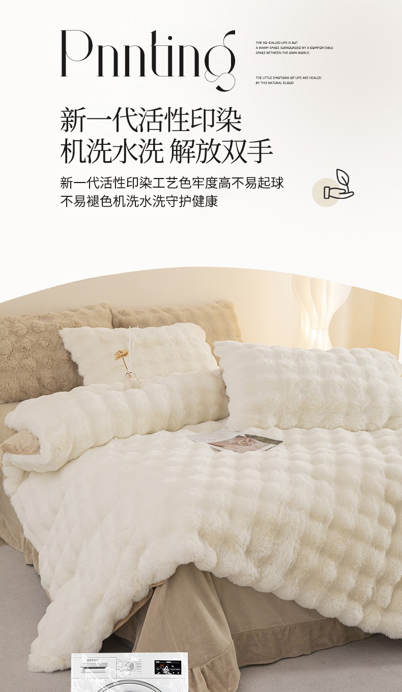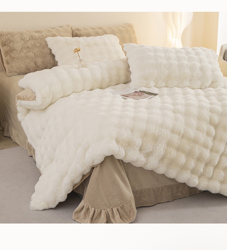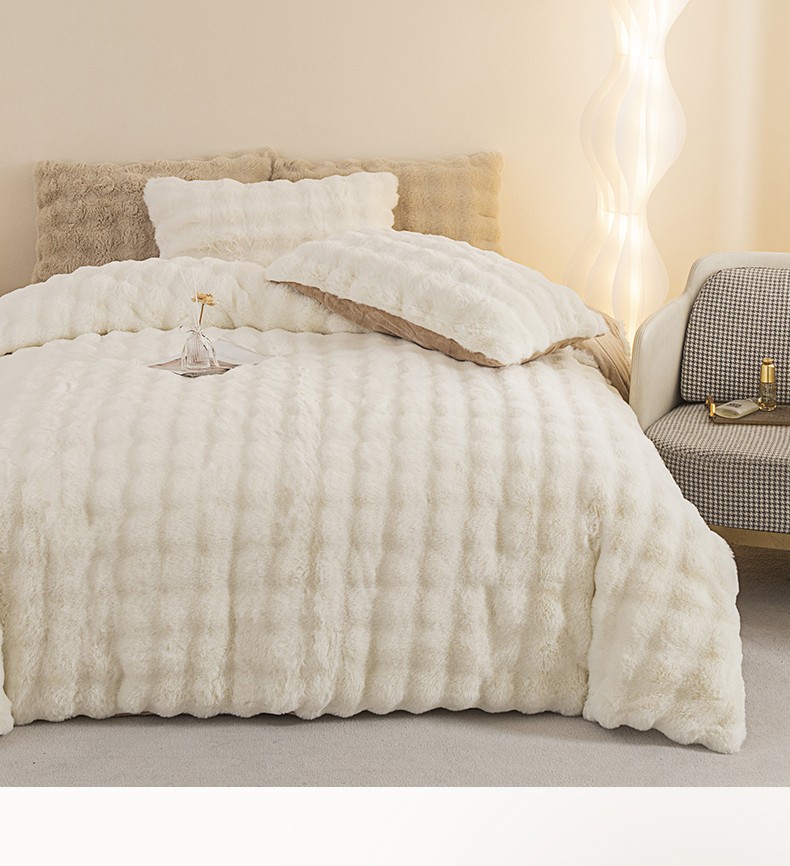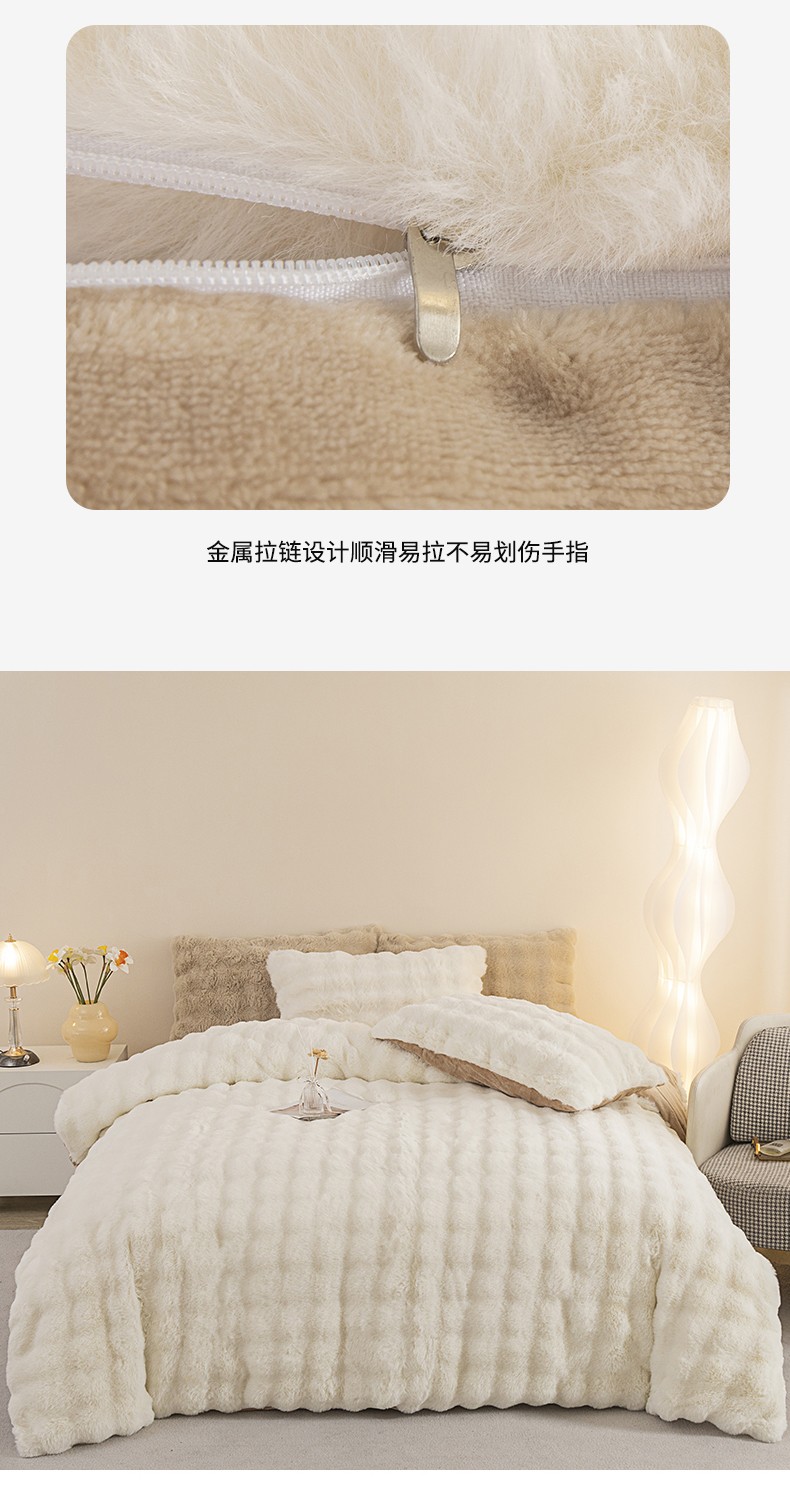 畅畅家纺 2023新款加厚AB版大泡泡绒皮草兔毛四件套 大泡泡奶白咖