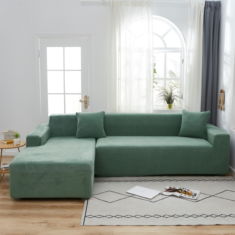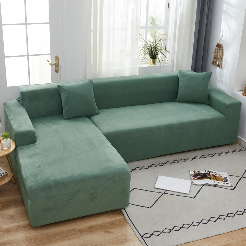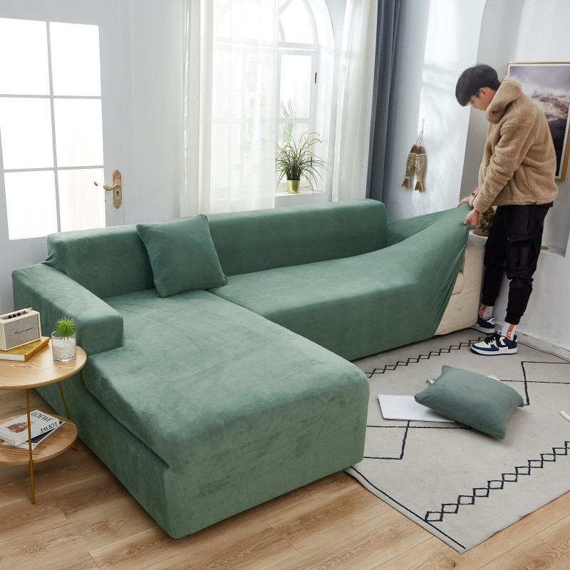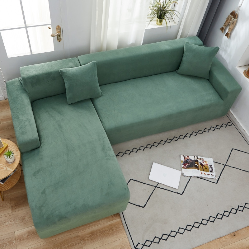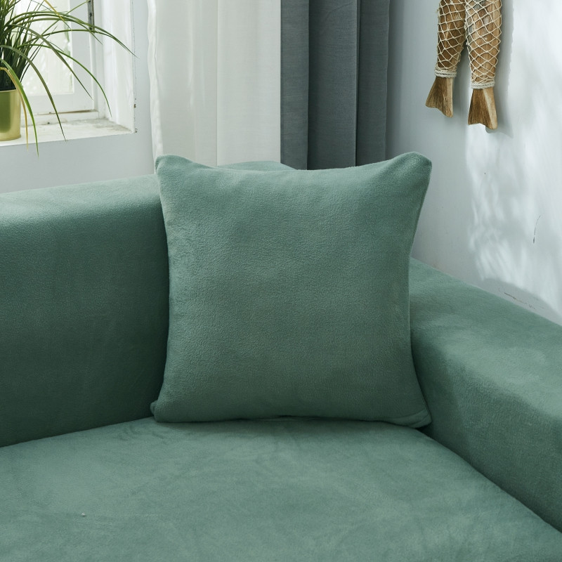丝绮鹿 2023新款毛绒纯色沙发套贵妃位图 青色-毛绒款