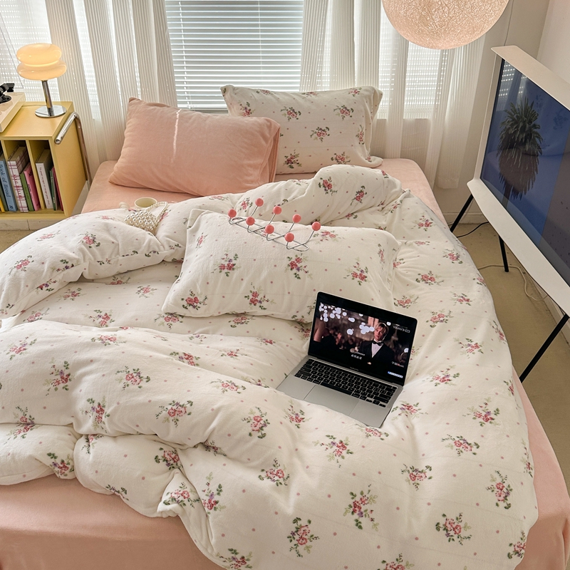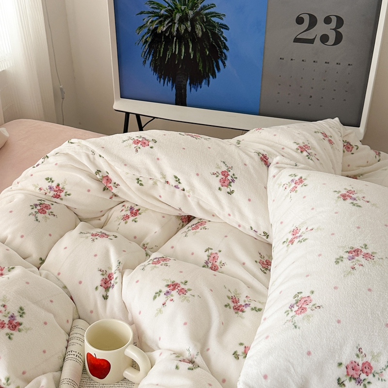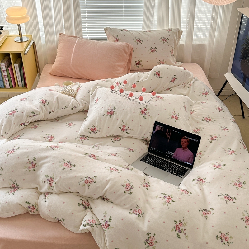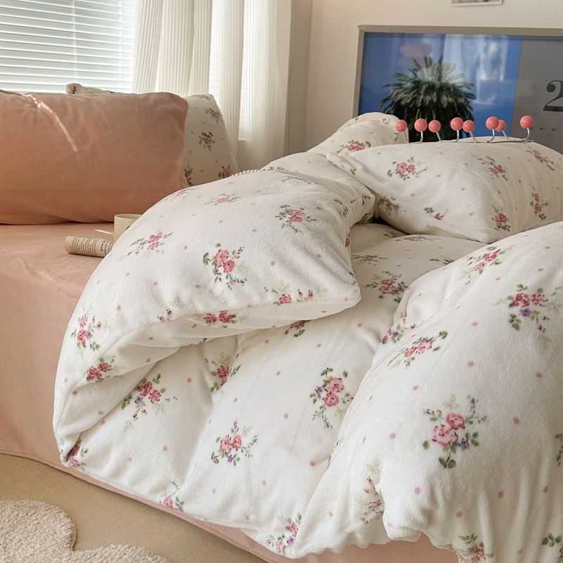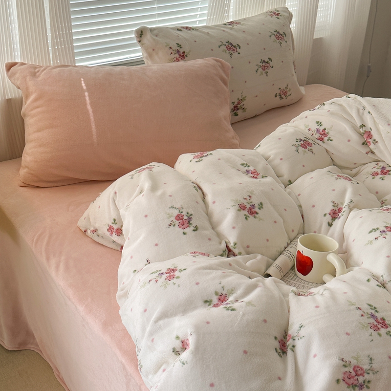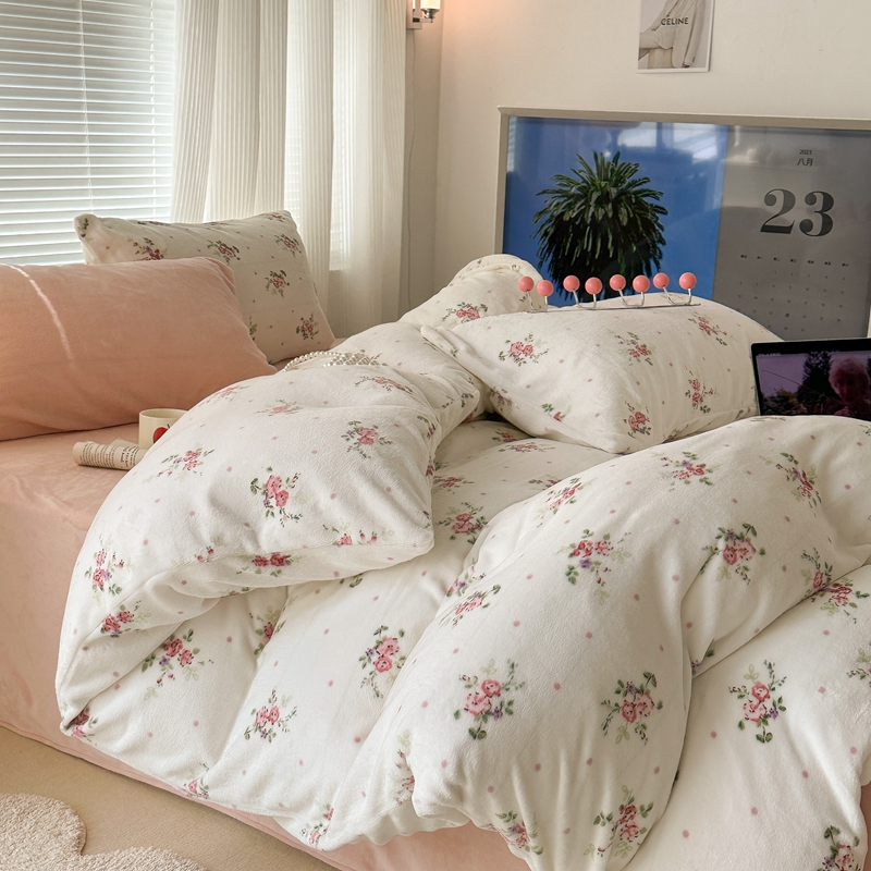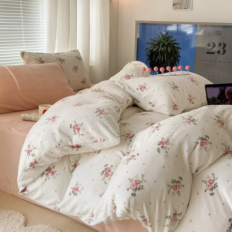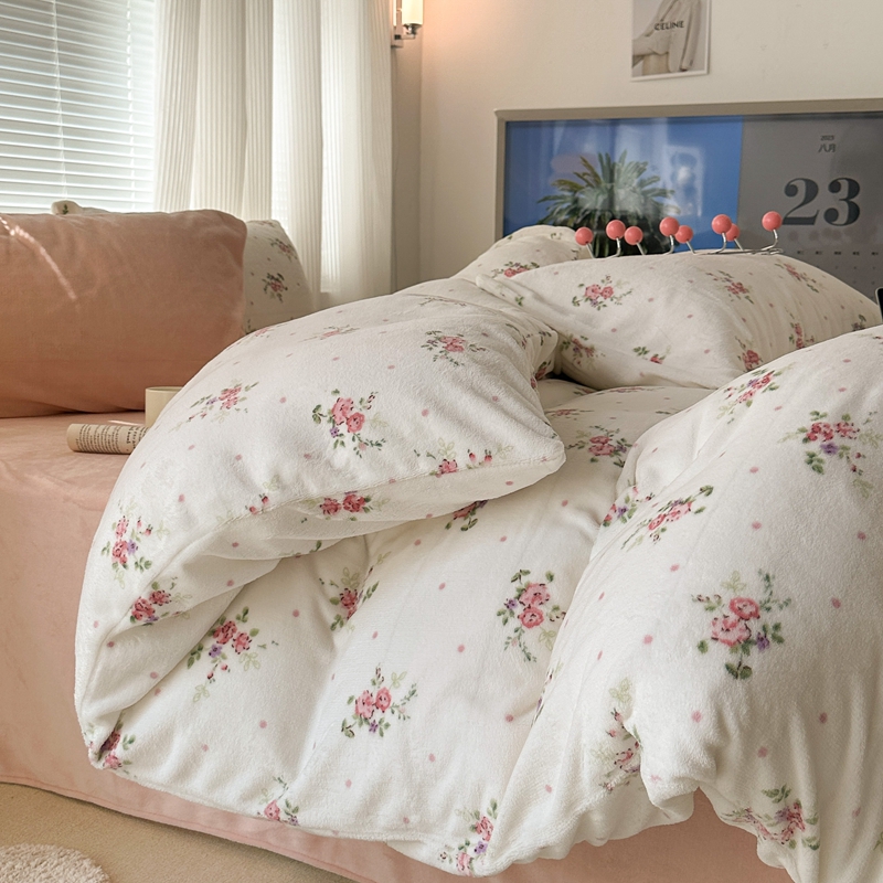 商品名称:昔可家纺 2023新款混搭牛奶绒四件套 初恋玫瑰