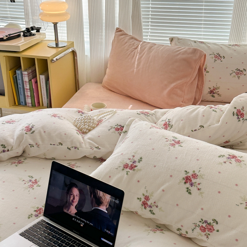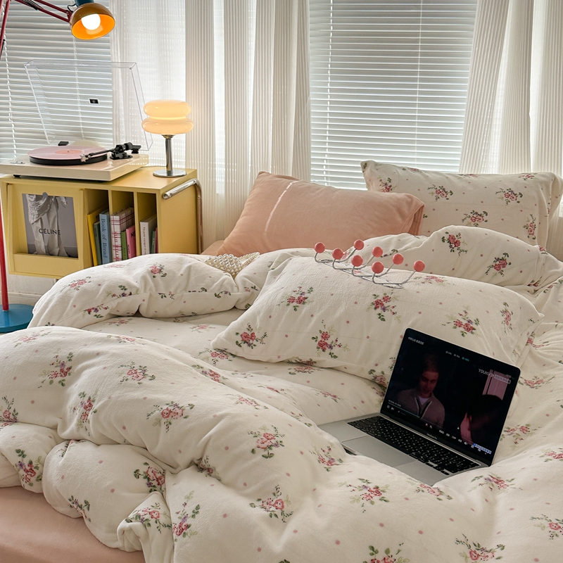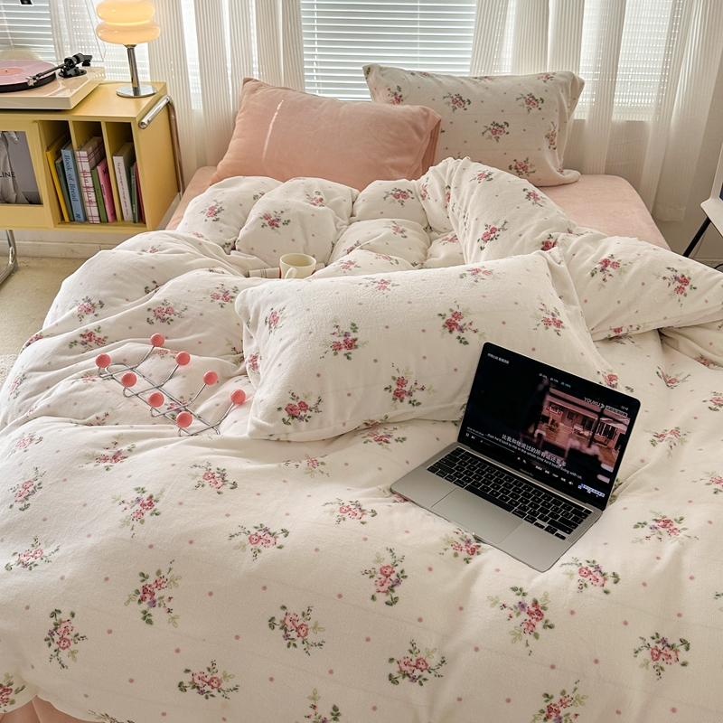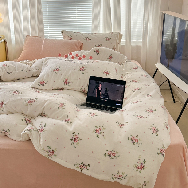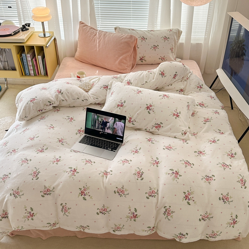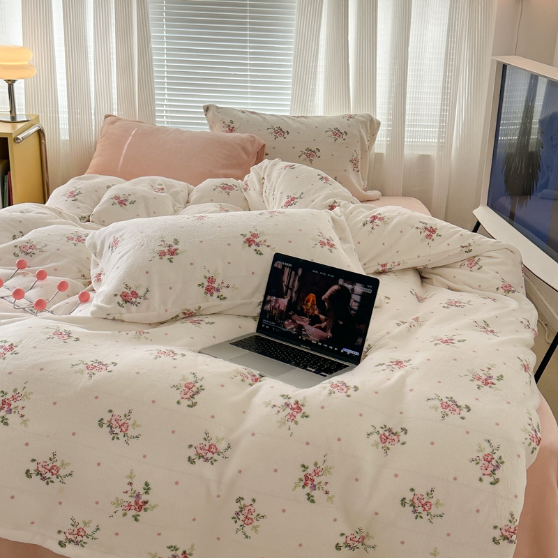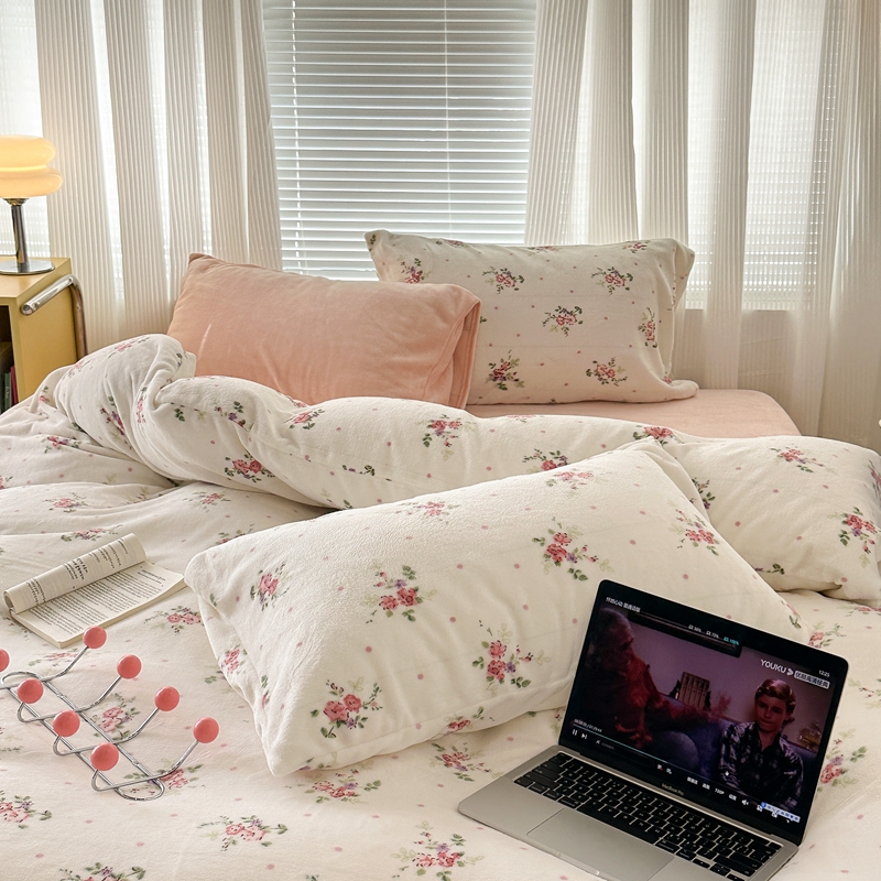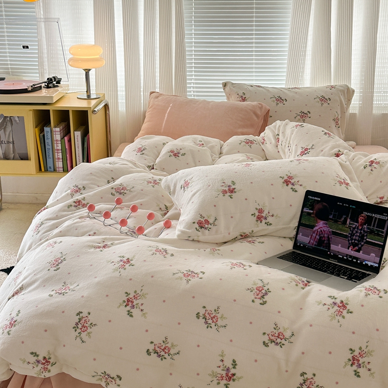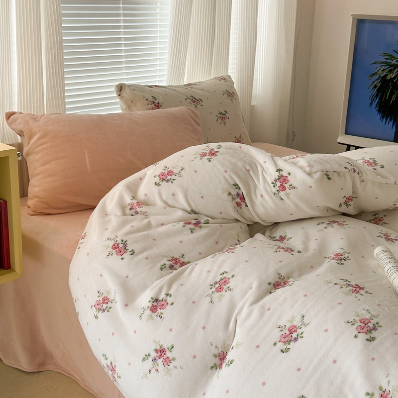 商品名称:昔可家纺 2023新款混搭牛奶绒四件套 初恋玫瑰