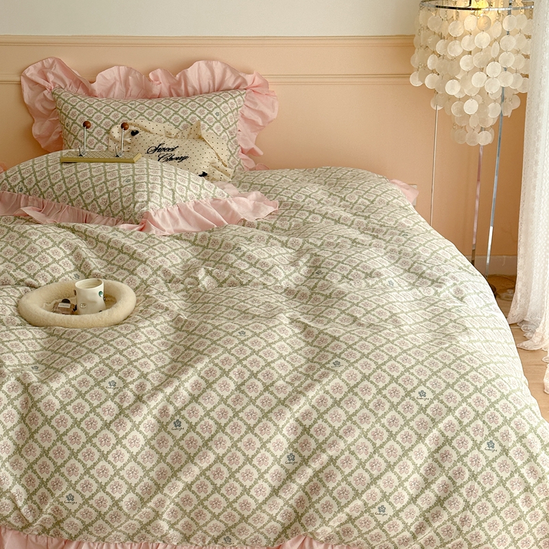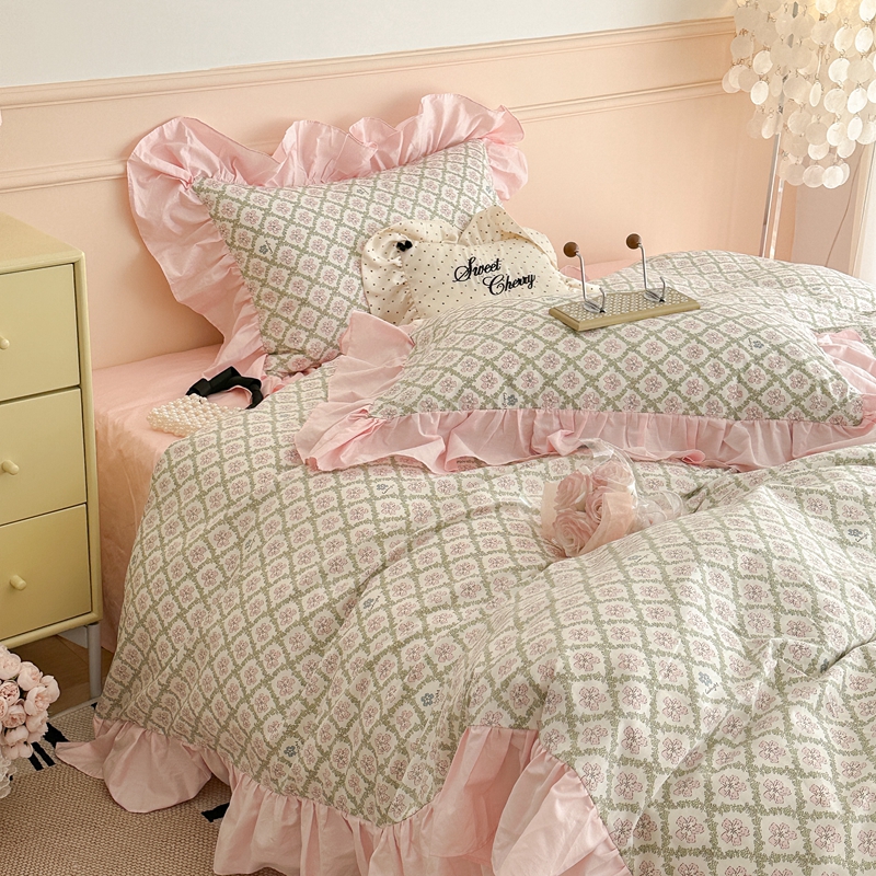商品名称:昔可家纺 2023新款韩式大花边全棉四件套 樱花可可