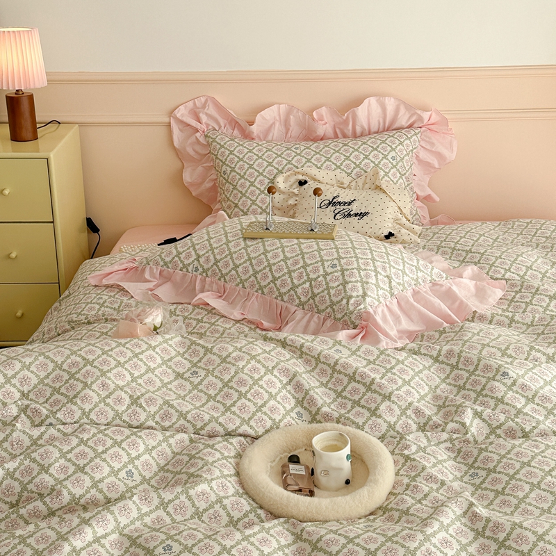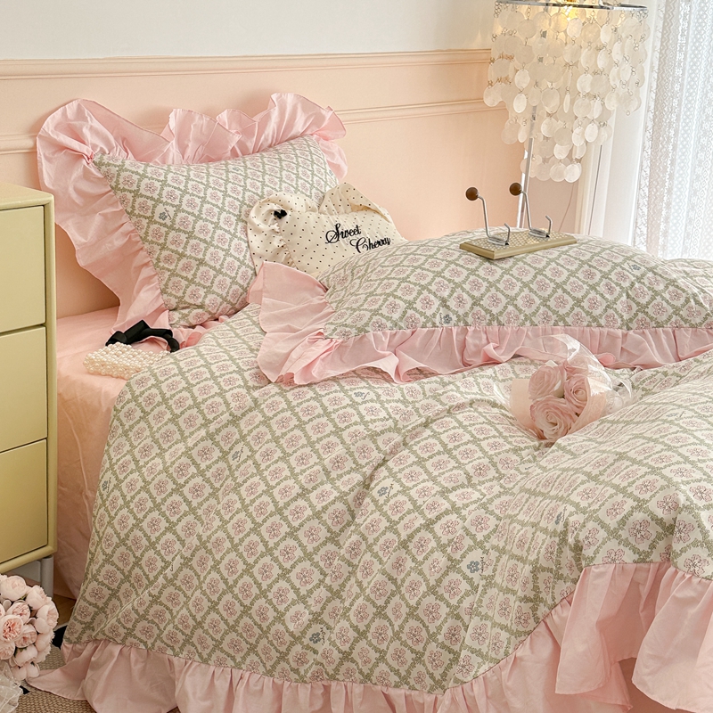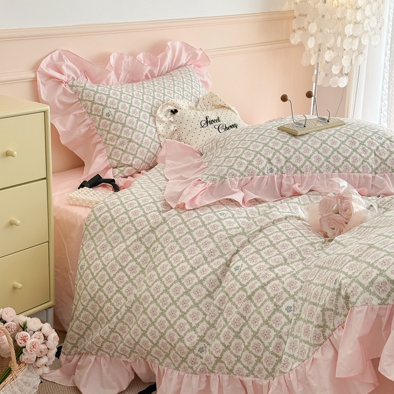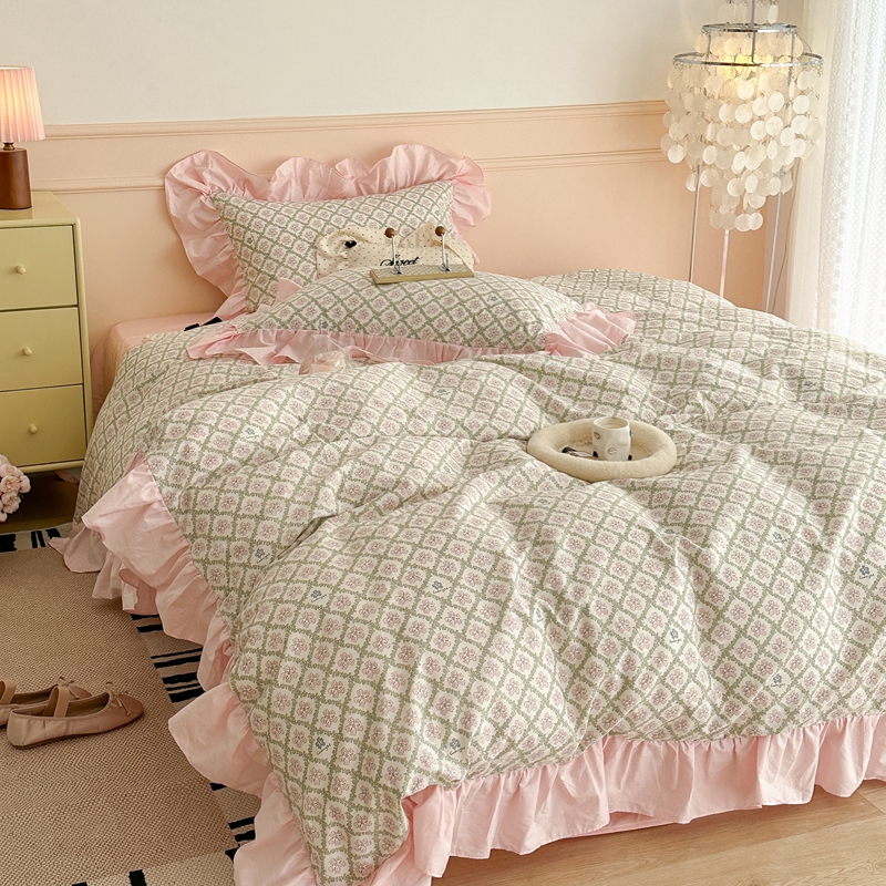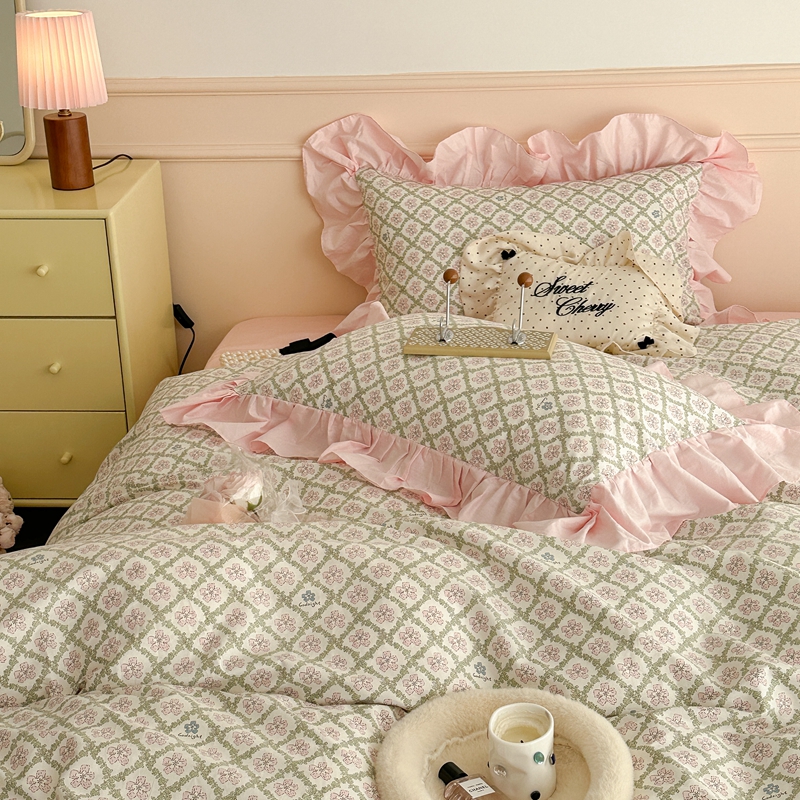 昔可家纺 2023新款韩式大花边全棉四件套 樱花可可