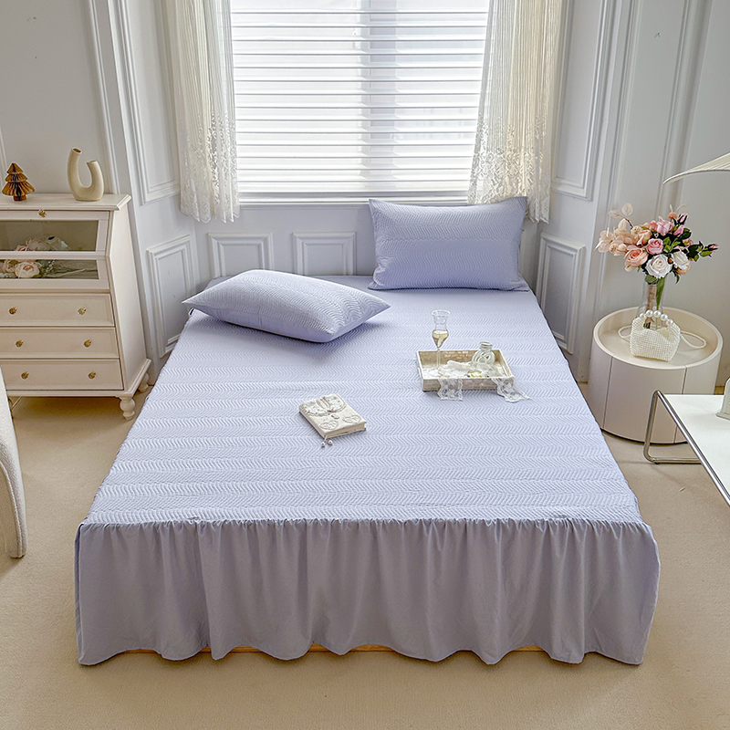 商品名称:紫碧螺 2023新款水洗棉麻韩版印花绗缝双面床裙 床裙-紫
