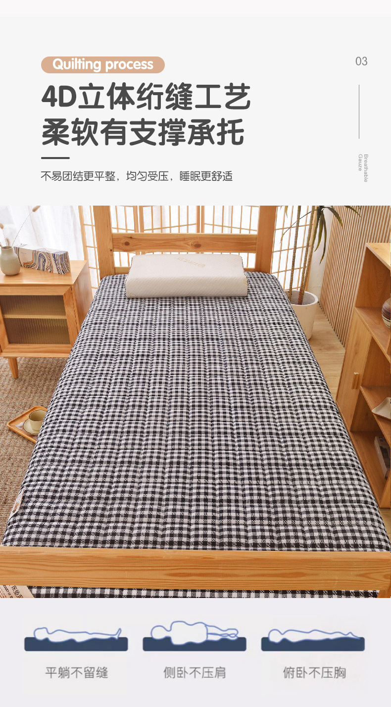 当前位置: 91家纺网 > 商品网购 > 床垫/床褥 > 普通床垫 > 张先生2024柔软亲肤5D立体防滑学生床垫 方格黑