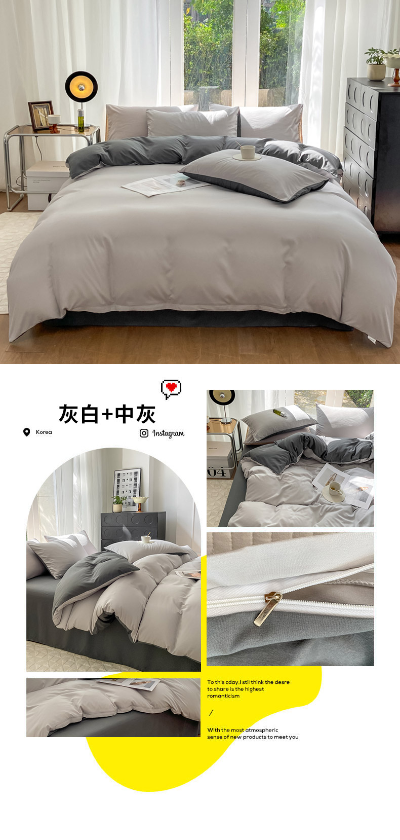 当前位置: 91家纺网 > 商品网购 > 床品套件 > 四件套 > 水洗棉四件套 > 安力森/诚臻酒店用品酒店用品 2025新款ins博主风水洗棉磨毛双拼四件套 灰白+中灰
