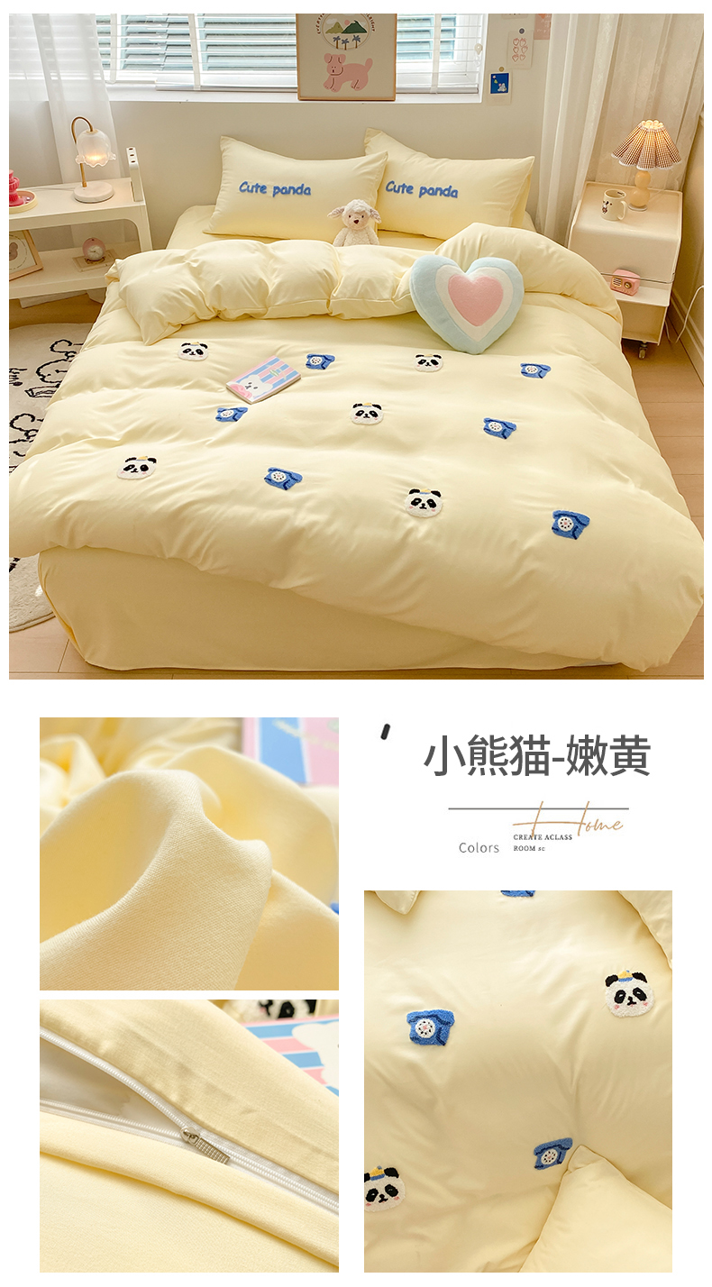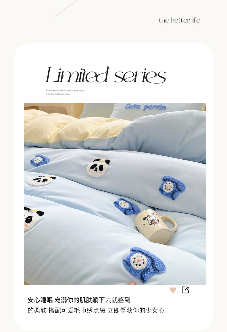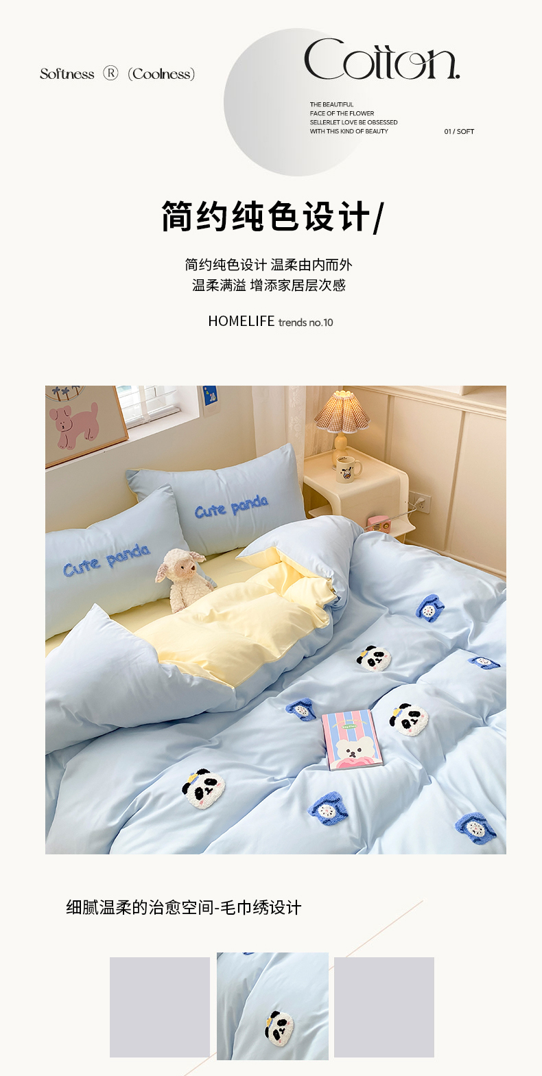 (总) 尤米 2024新款奶油风水洗棉四件套,可爱狗-白,可爱狗-粉,小熊猫-黄,小熊猫-蓝,郁金香-白,郁金香-绿