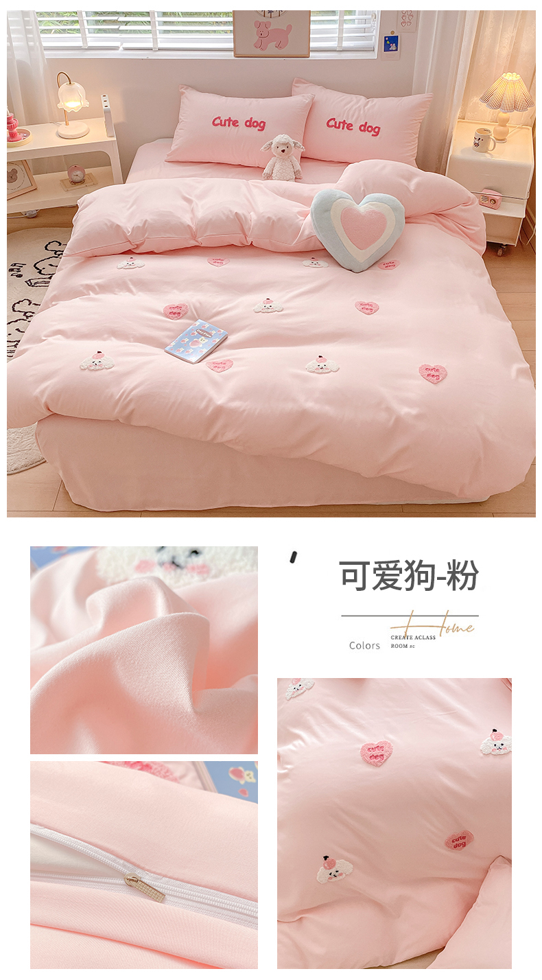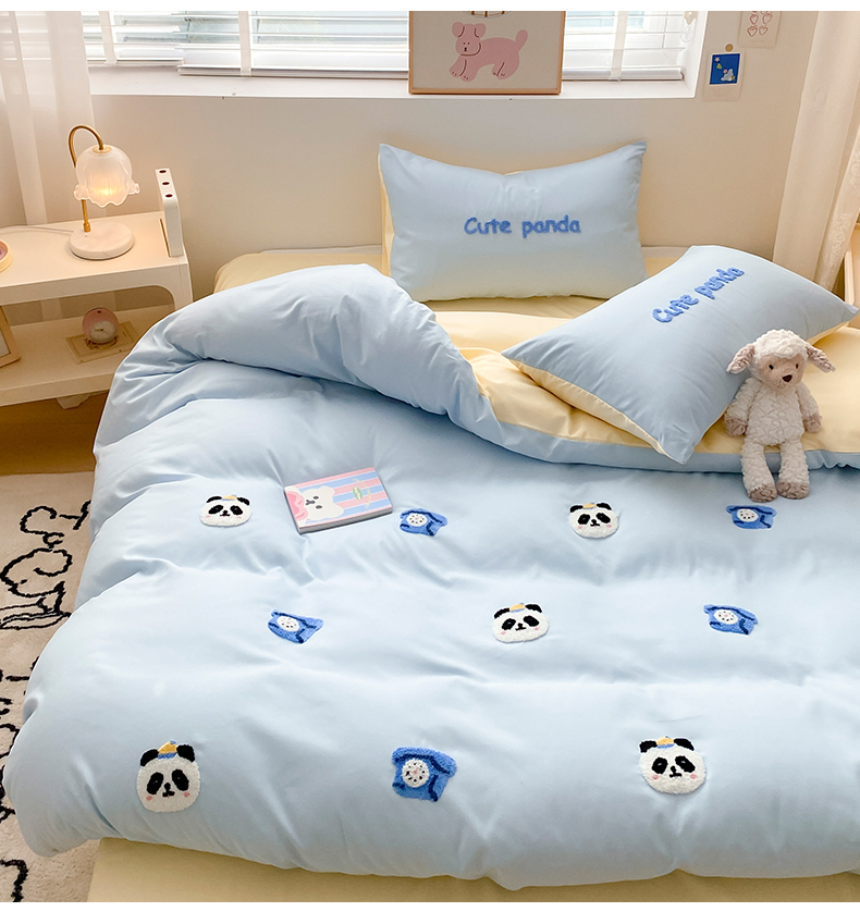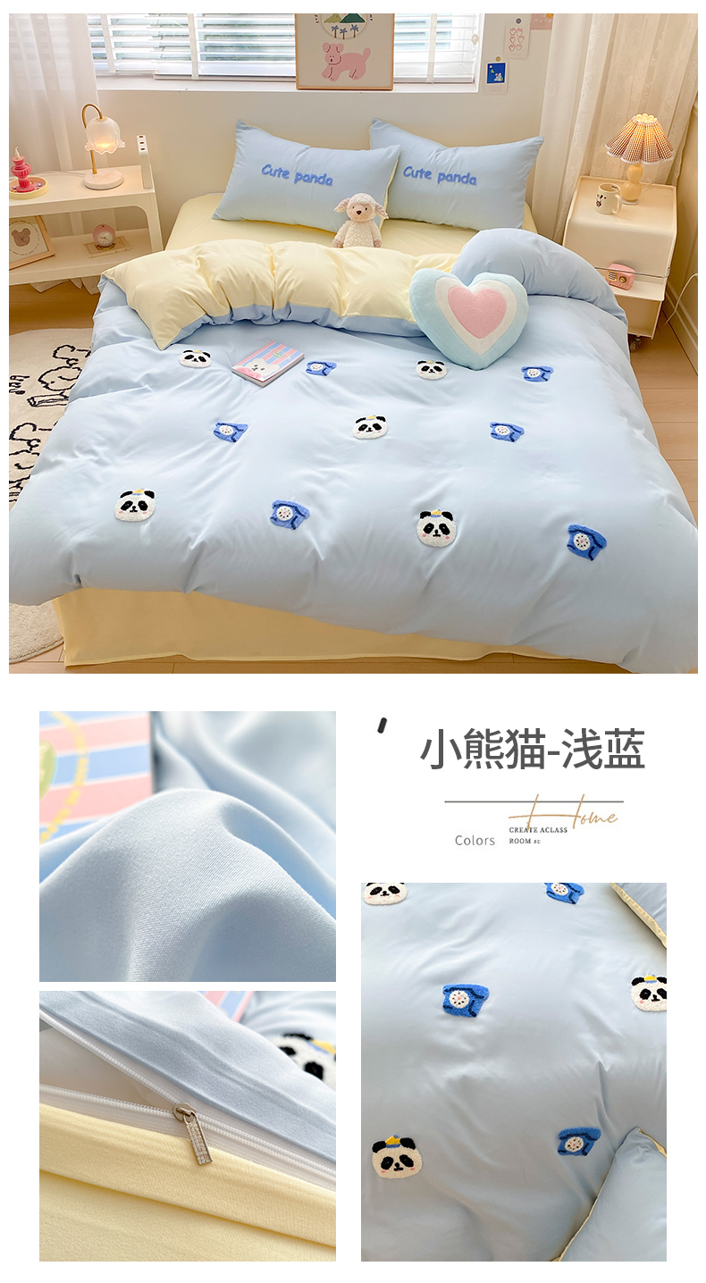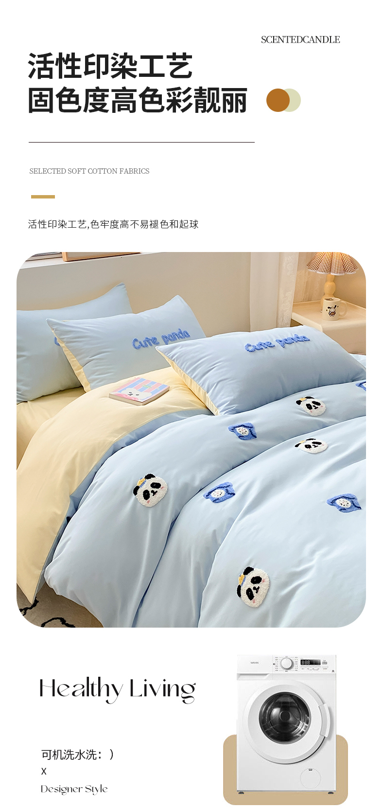 (总) 尤米 2024新款奶油风水洗棉四件套,可爱狗-白,可爱狗-粉,小熊猫-黄,小熊猫-蓝,郁金香-白,郁金香-绿
