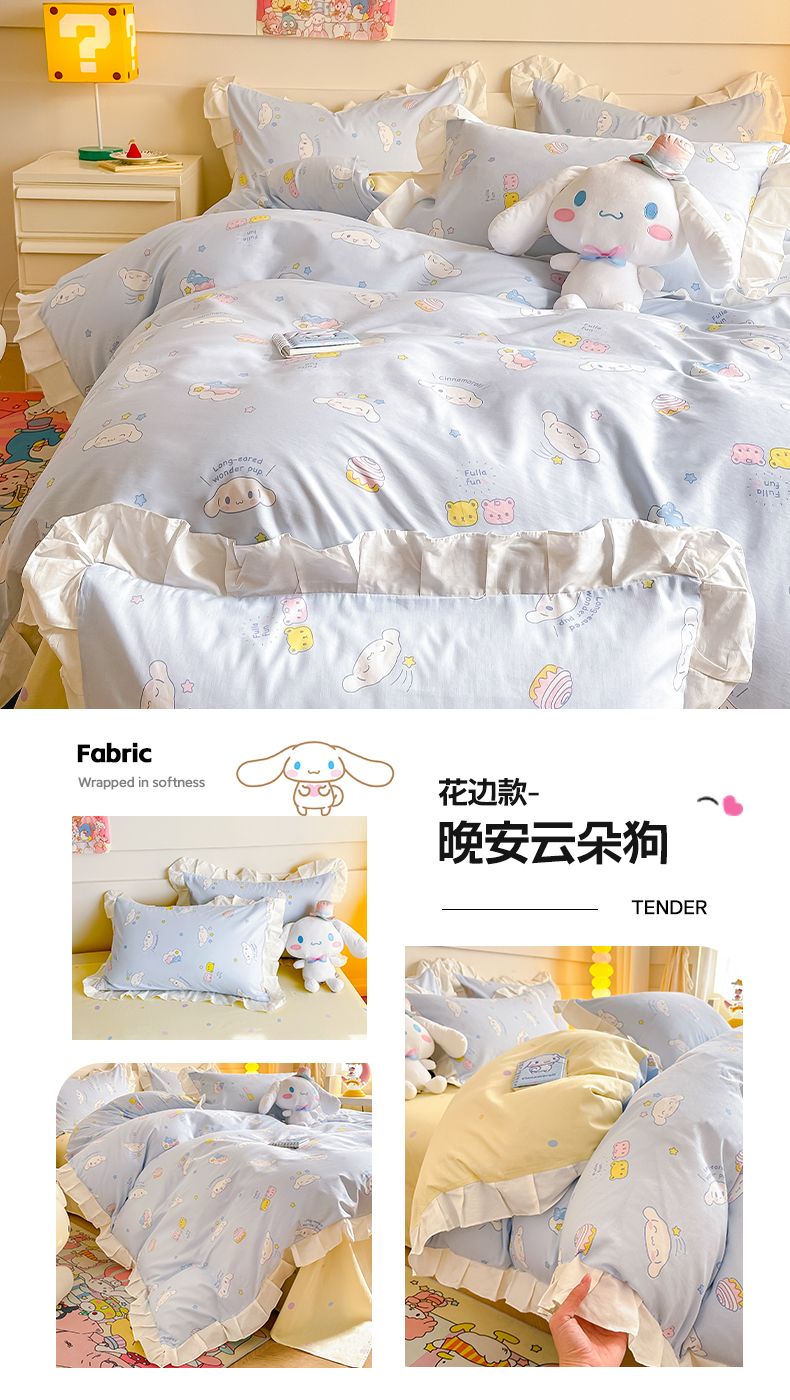 商品名称:沐辰 2024新款正版授权三丽鸥花边系列四件套 花边款-晚安云朵狗