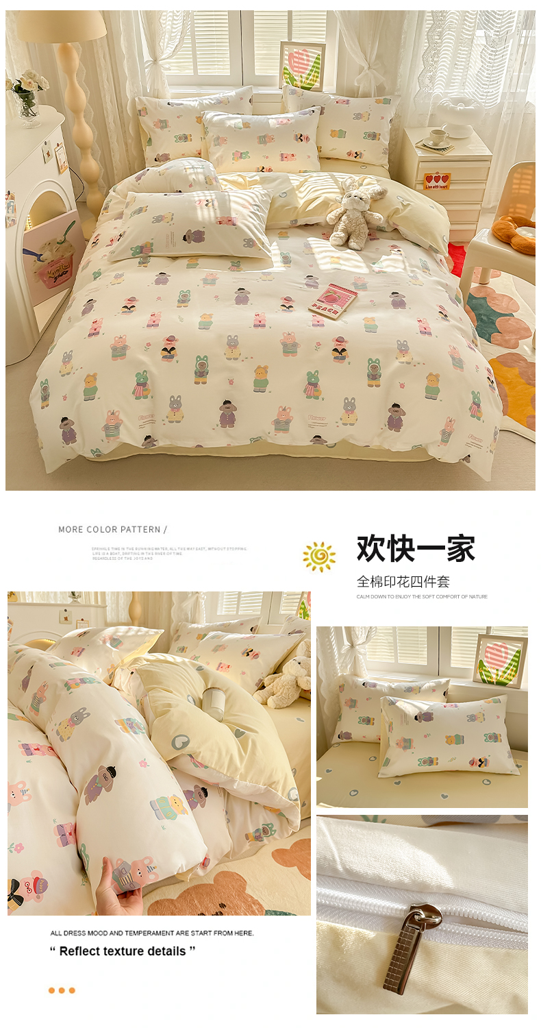沐辰 2024新款13372全棉印花四件套(第二批) 欢快一家