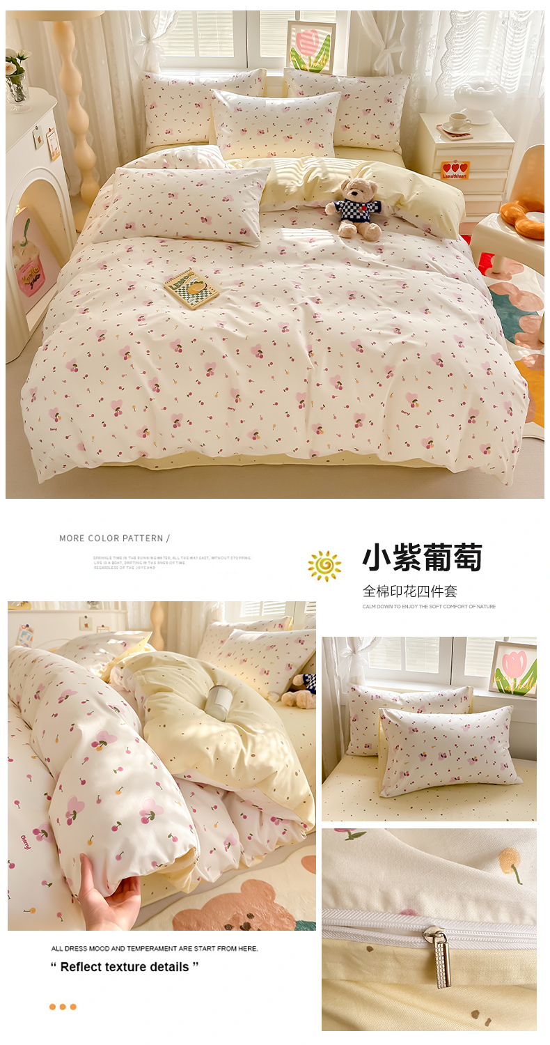 商品名称:沐辰 2024新款13372全棉印花四件套(第二批) 小紫葡萄