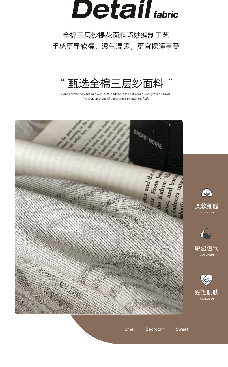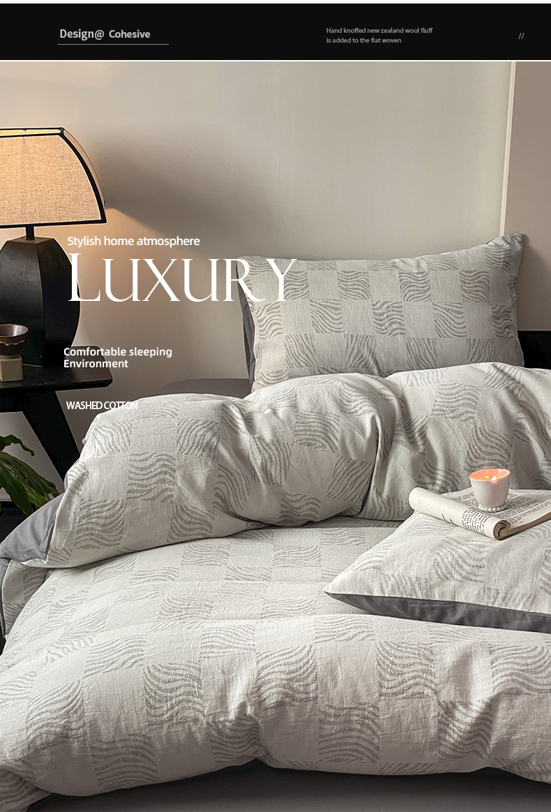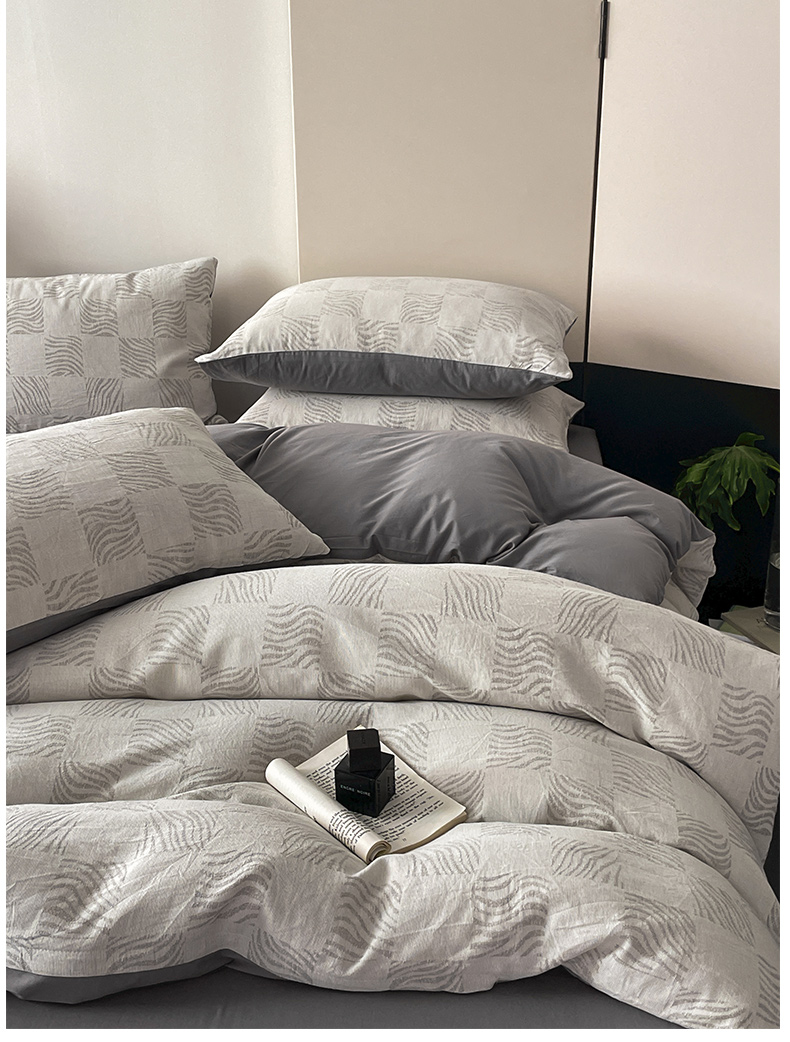 商品名称:苏木年华 2024新款A类全棉三层纱提花四件套--方格系列 方格灰