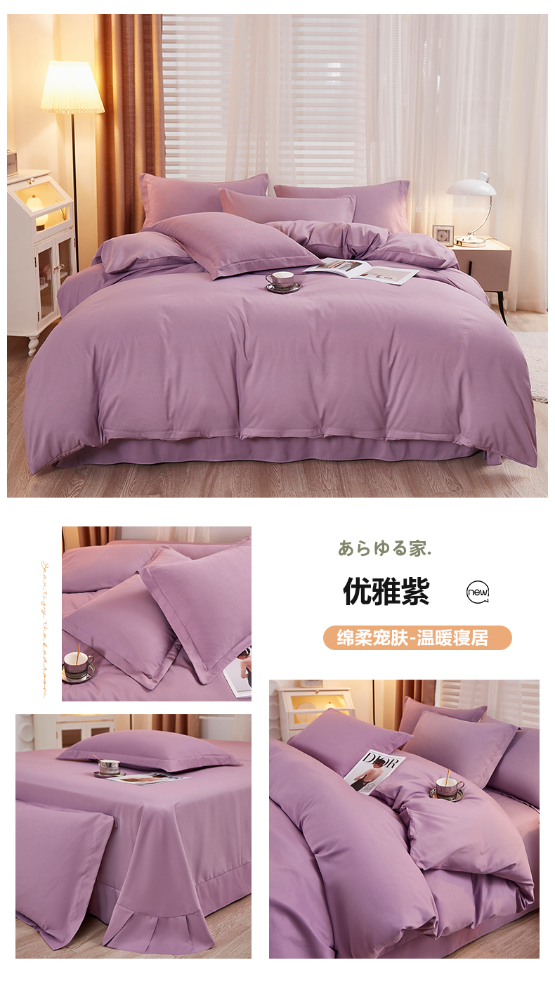 商品名称:丝涟家居 2025新款纯色亲肤棉磨毛四件套 优雅紫