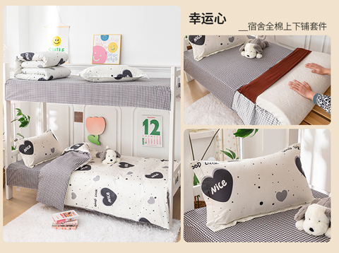 商品名称:纯棉印花13070学生三件套寝室全棉宿舍床套件上下铺床品 幸运心