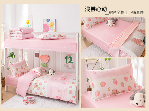 纯棉印花13070学生三件套寝室全棉宿舍床套件上下铺床品 浅尝心动