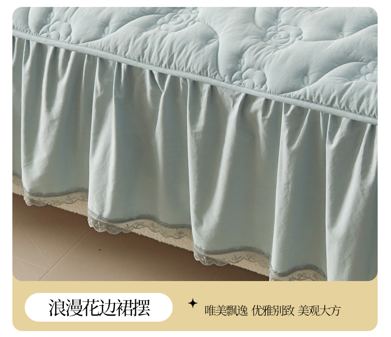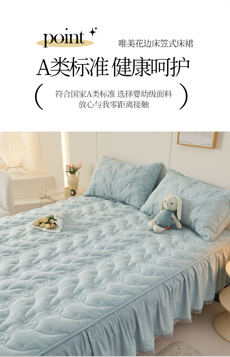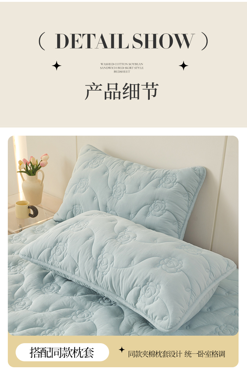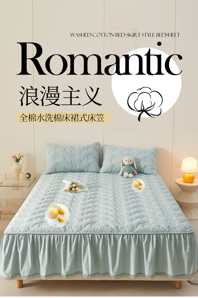 3C 2024新款全棉水洗棉大豆夹棉床裙式床笠 婴儿蓝